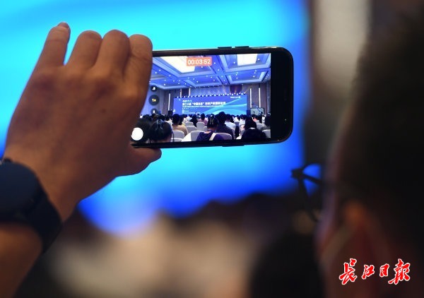 与会嘉宾用手机记录第二十届"中国光谷"知识产权国际论坛。 记者高勇 摄