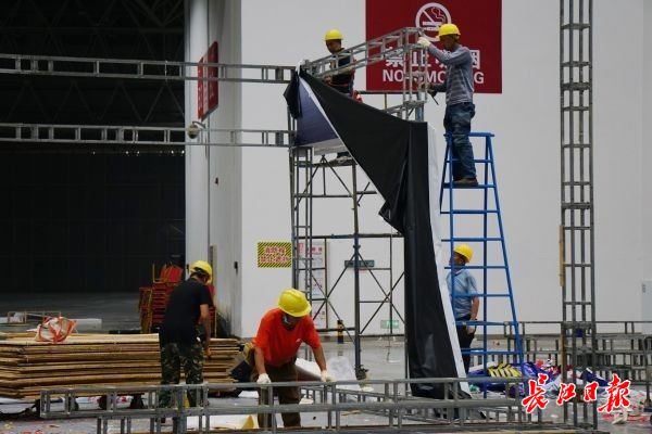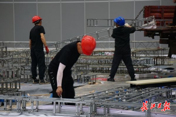 工人们正在展馆内整理上一个展会的支架。长江日报记者秦璟 摄
