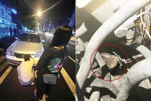 接线员得知我的问题后,第一时间转派给附近的派出所,派出所很快与我回电,并且通知了车主,这位不知姓名的警官,一直在电话那头关心着最新进展。这时,旁边路过两名女大学生,听到动静,也非常热情地加入了“营救”行动。我们在等待的过程中,不停地打量和关注着引擎盖里的情况。
