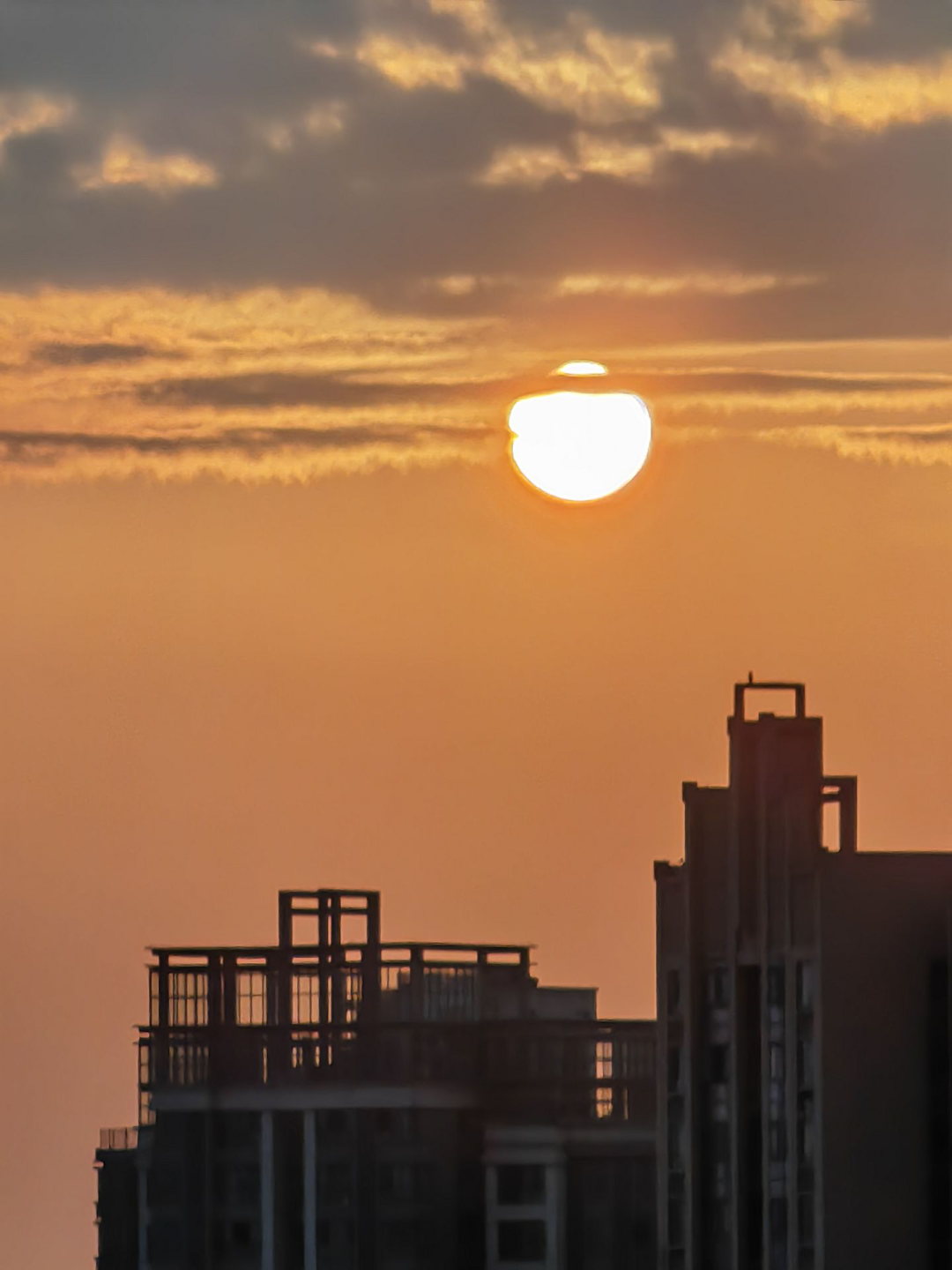 雨过天晴,想着今天的落日应该会很美,特意跑到楼顶等太阳下山。等呀等呀,但太阳一直被厚厚的云层遮着。本以为拍不到美景了,在18点49分那一刻,天边的太阳终于冲出云层,然后带着金色的光辉,缓缓落到楼宇后面去了。我激动地按下快门,这就是美妙的大自然,这也是等待的力量,总是会让生活充满惊喜!