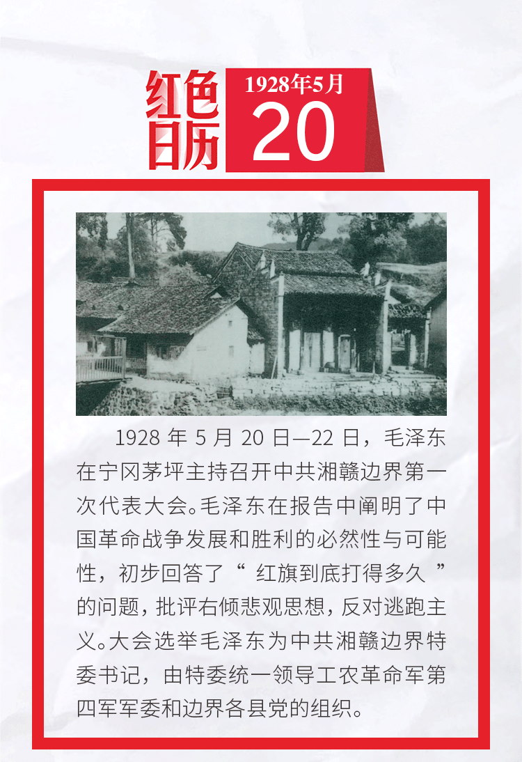 1928年的今天,毛泽东在宁冈茅坪主持召开中共湘赣边界第一次代表大会|红色日历