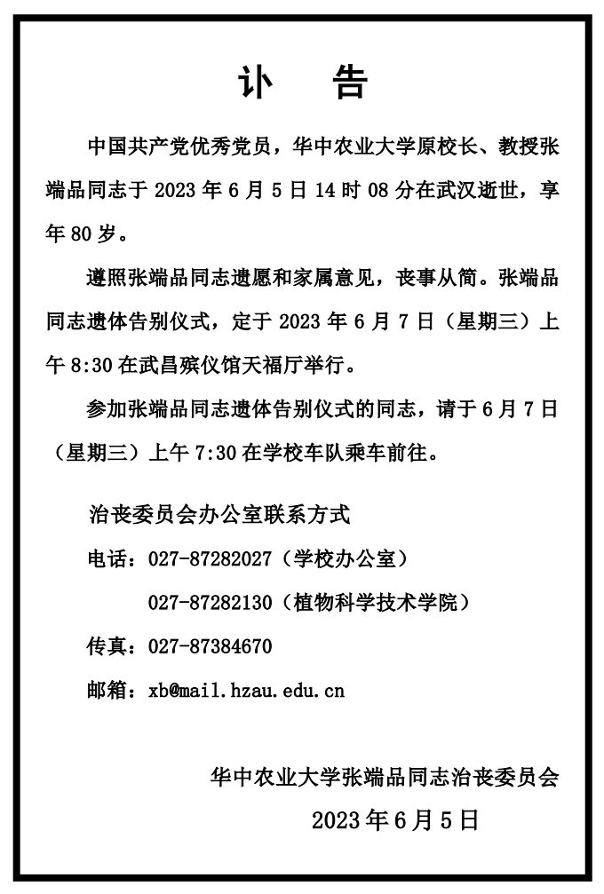 华中农业大学发布讣告: