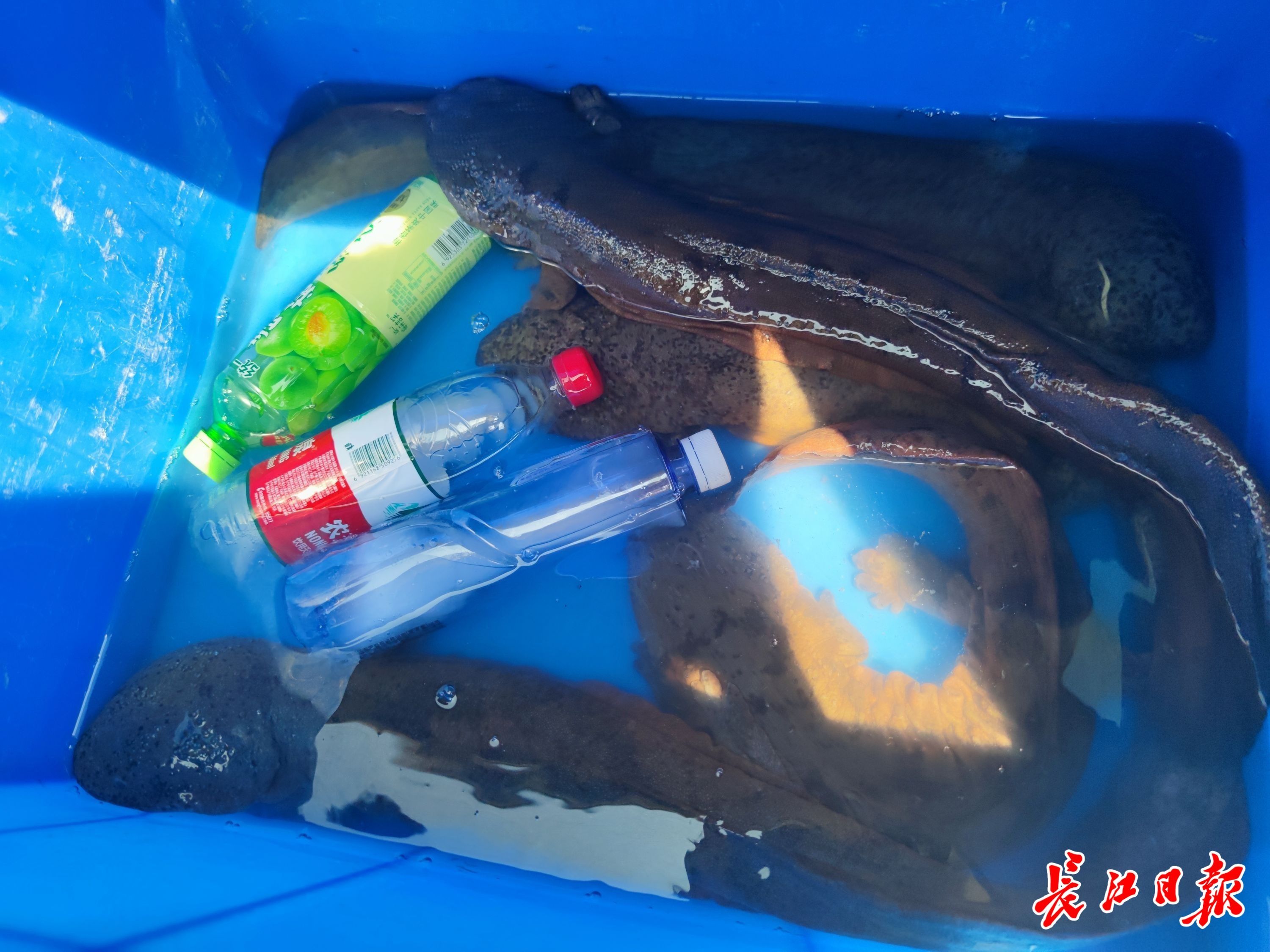 长江日报记者独家参与了此次野外放归的报道,全程见证了这些娃娃鱼的体检、装箱过程。记者看到,运送30尾大鲵(娃娃鱼)前往神农架林区途中,工作人员不断为它们换水、加冰,以保持18一20℃适宜水温。