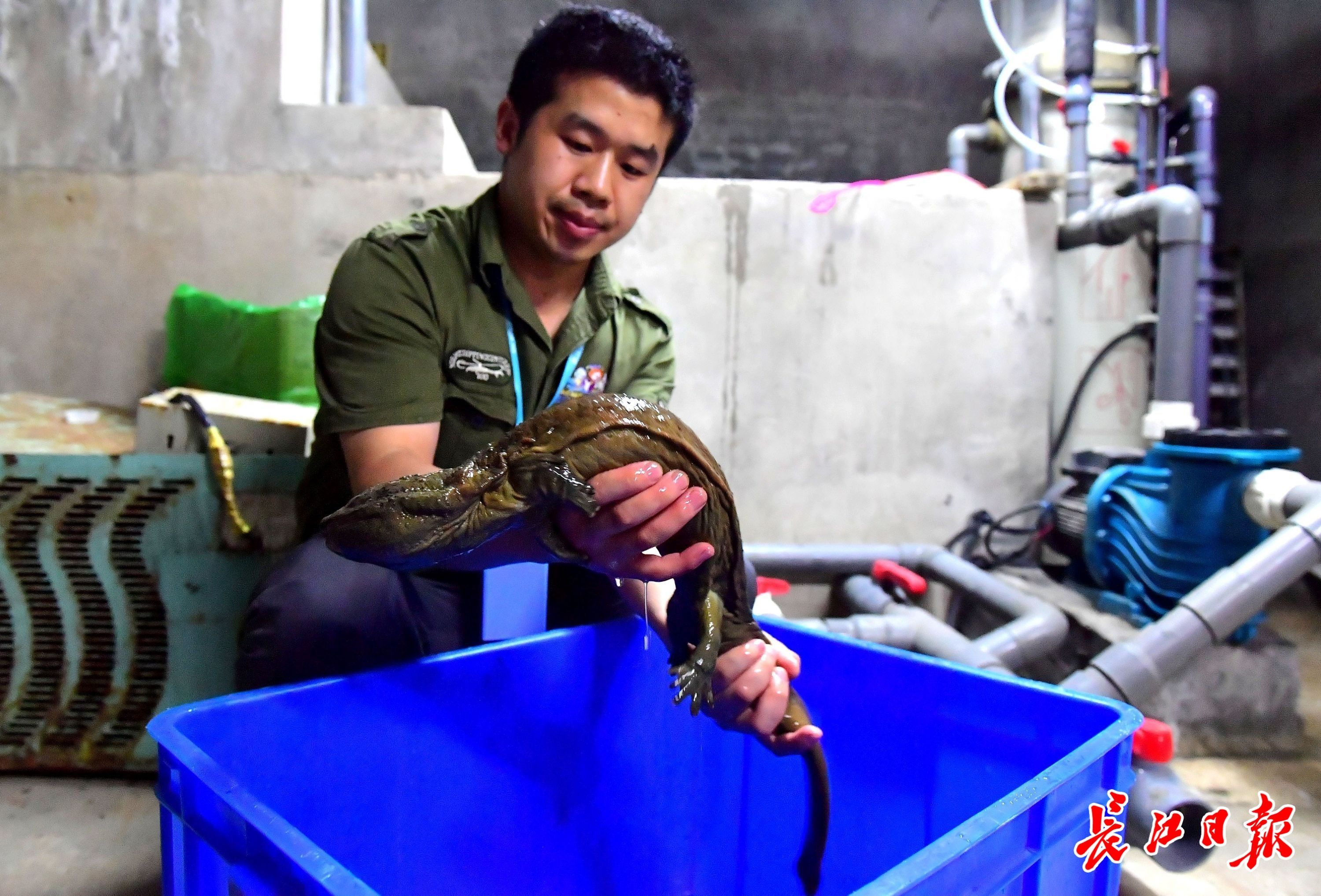 8日上午,东湖海洋世界(湖北省水生野生动物救治救护中心)工作人员从武汉出发将这些大鲵(娃娃鱼)装箱运往了神农架林区,这些娃娃鱼主要来源于群众救护、捐献、部门查扣没收。