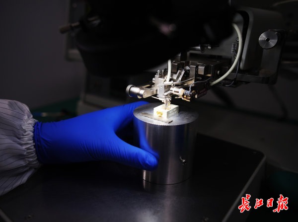 工作人员正在加工量子芯片放大器。