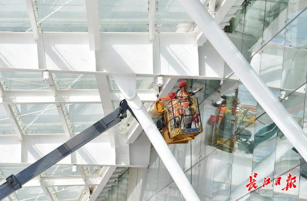 放眼望去,前方二层夹层25米长的3D裸眼大屏正在播放武汉的风土人情,立体成像技术给人以强烈的视觉震撼力。而据透露,大屏背后及两侧将打造别具特色的城市打卡点。“在电视剧里,经常有主人公在机场一边聊天,一边坐看窗外飞机起降的场景,而这个场景也通过建设者们的匠心得以实现。”中建三局武汉天河机场T2航站楼改造工程项目经理孙哲说,类似这样的新增功能还有很多,将显著提升旅客出行的舒适度和体验感。