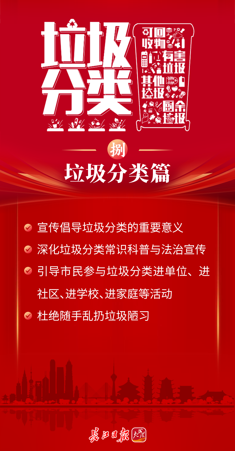 据悉,“武汉以我为荣”文明素养提升行动主要包括文明交通篇、文明旅游篇、文明上网篇、文明餐桌篇、诚实守信篇、卫生健康篇、绿色环保篇、垃圾分类篇8个方面。