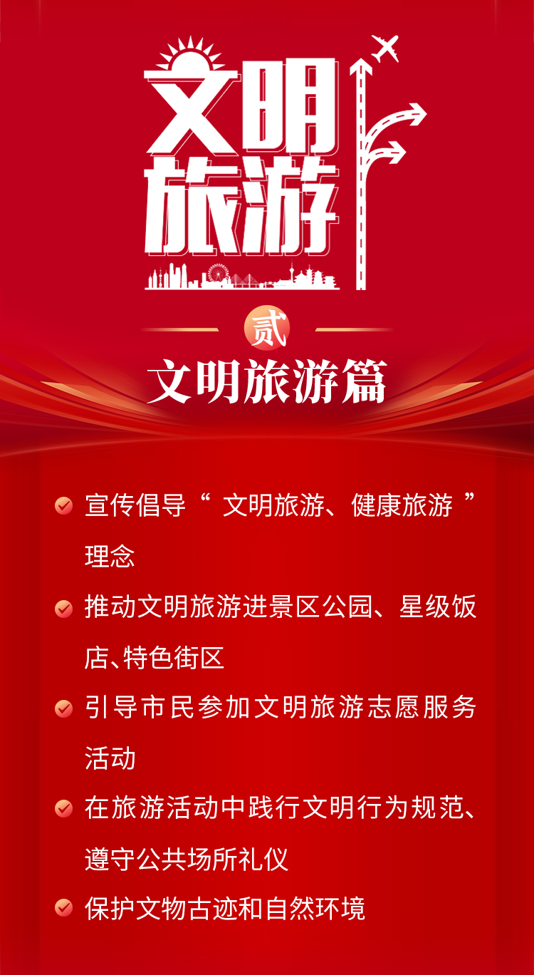 文明旅游篇主要是宣传倡导“文明旅游、健康旅游”理念,推动文明旅游进景区公园、进星级饭店、进特色街区,引导市民参加文明旅游志愿服务活动,在旅游活动中践行文明行为规范、遵守公共场所礼仪,保护文物古迹和自然环境,抵制不合理低价游等乱象,用文明旅游良好行为为武汉文明形象加分。