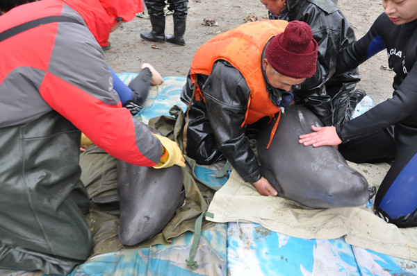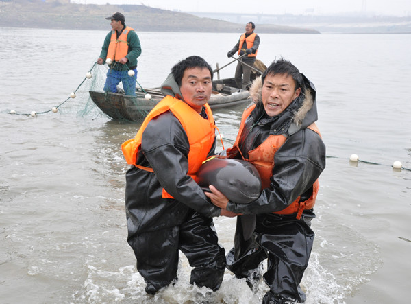 经主管部门批准,2014年1月10日,这4头江豚捕捞起水后迁往天鹅洲保护区。