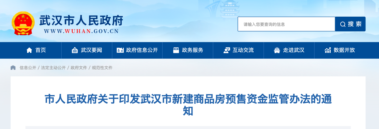 开发企业不得以任何形式使用非监管账户收取房价款;监管额度内预售资金应当专款专用,按照工程建设进度予以拨付……近日,武汉市人民政府发布《武汉市新建商品房预售资金监管办法》(以下简称《办法》)。