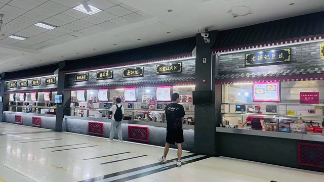 在湖北经济学院楚菜“非遗食堂”里,四季美汤包、蔡林记热干面、德华楼包子、老福庆和牛肉面、孝感米酒……琳琅满目的武汉老字号传统早点一字排开,黑墙灰瓦配上古色古香的牌匾,漫步其中,仿佛置身传统小吃街。