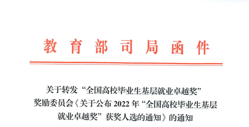 点击查看2022年度“全国高校毕业生基层就业卓越奖”获奖全名单>>>