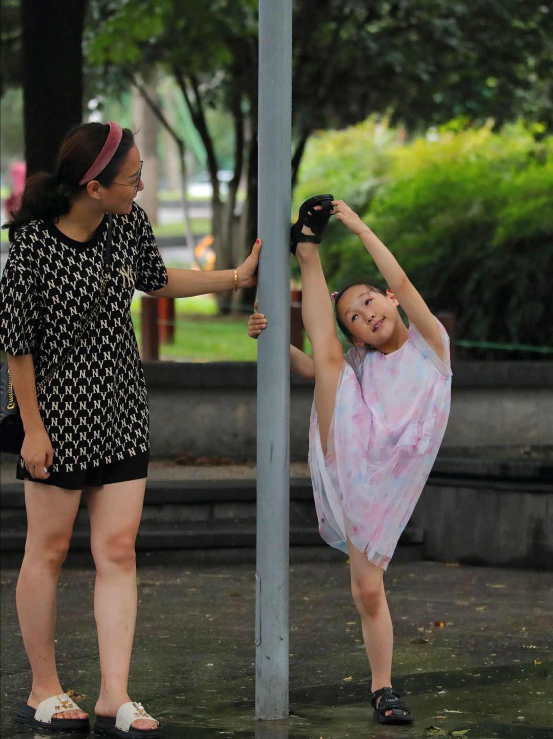 今天在后襄河公园附近躲雨,雨刚停,就看见一位小女孩立刻跑到公园里练习舞蹈基本功。妈妈在一旁面带微笑地说:“她已经跳了三四年舞,走到哪里都想着练一下。”是啊,在光鲜亮丽的舞台下,就是这样日复一日的勤奋,这是比天赋要重要的宝藏。