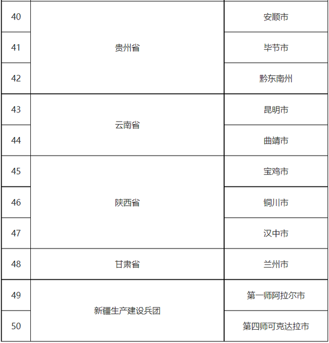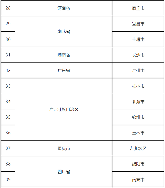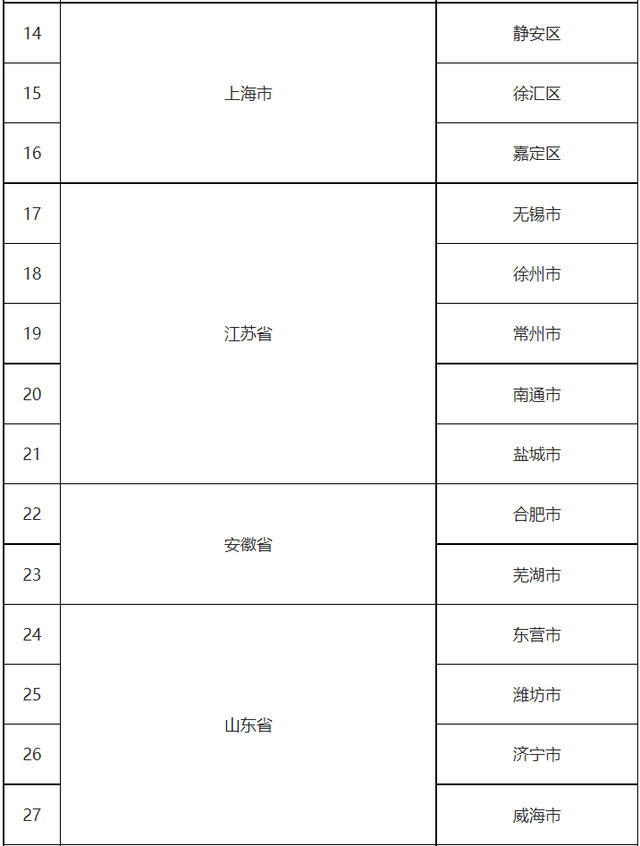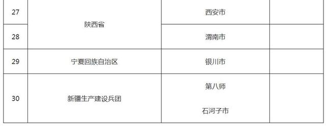 全国第二批城市一刻钟便民生活圈试点名单(按行政区划序列排序):