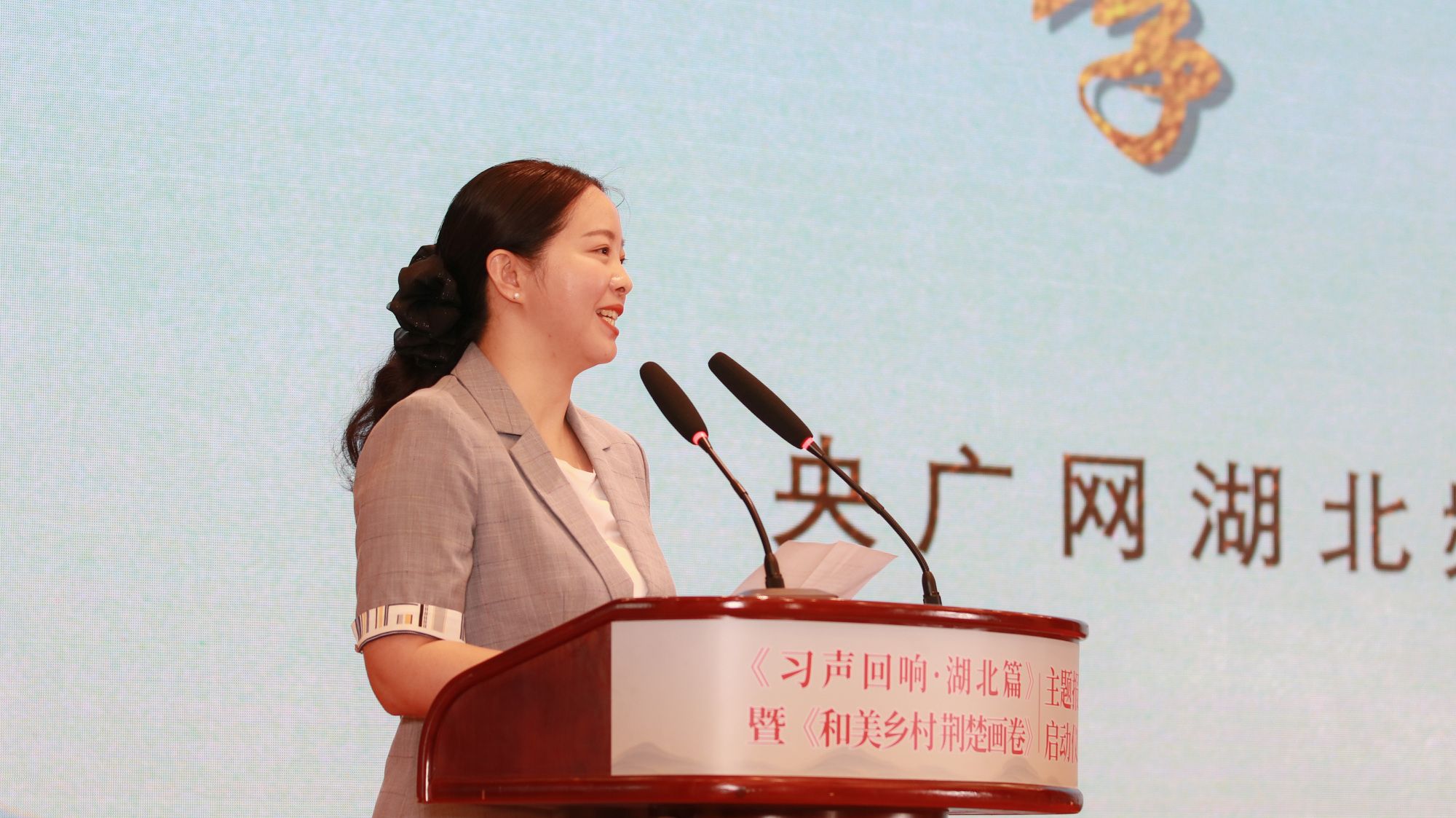 央广网湖北频道负责人李欢介绍《和美乡村 荆楚画卷》主题调研采访活动情况(央广网发 邓子依 摄)