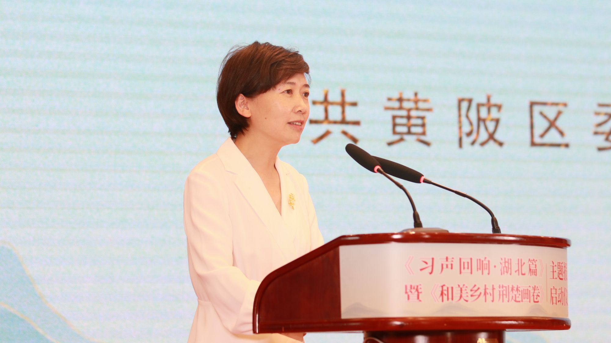武汉市黄陂区委常委、宣传部部长何文娟致欢迎辞(央广网发 邓子依 摄)