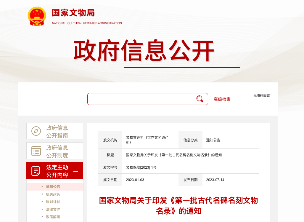 国家文物局有关负责人表示,考虑到巨大的资源数量,古代名碑名刻文物名录采取分批次公布的方式,此次公布的名录以刻成年代在1911年以前的古代碑刻石刻文物作为遴选对象。下一步,国家文物局将制定出台加强古代碑刻石刻文物保护管理的政策措施,实施一批古代碑刻石刻文物本体保护和阐释展示项目,全面提升古代碑刻石刻文物保护利用水平。