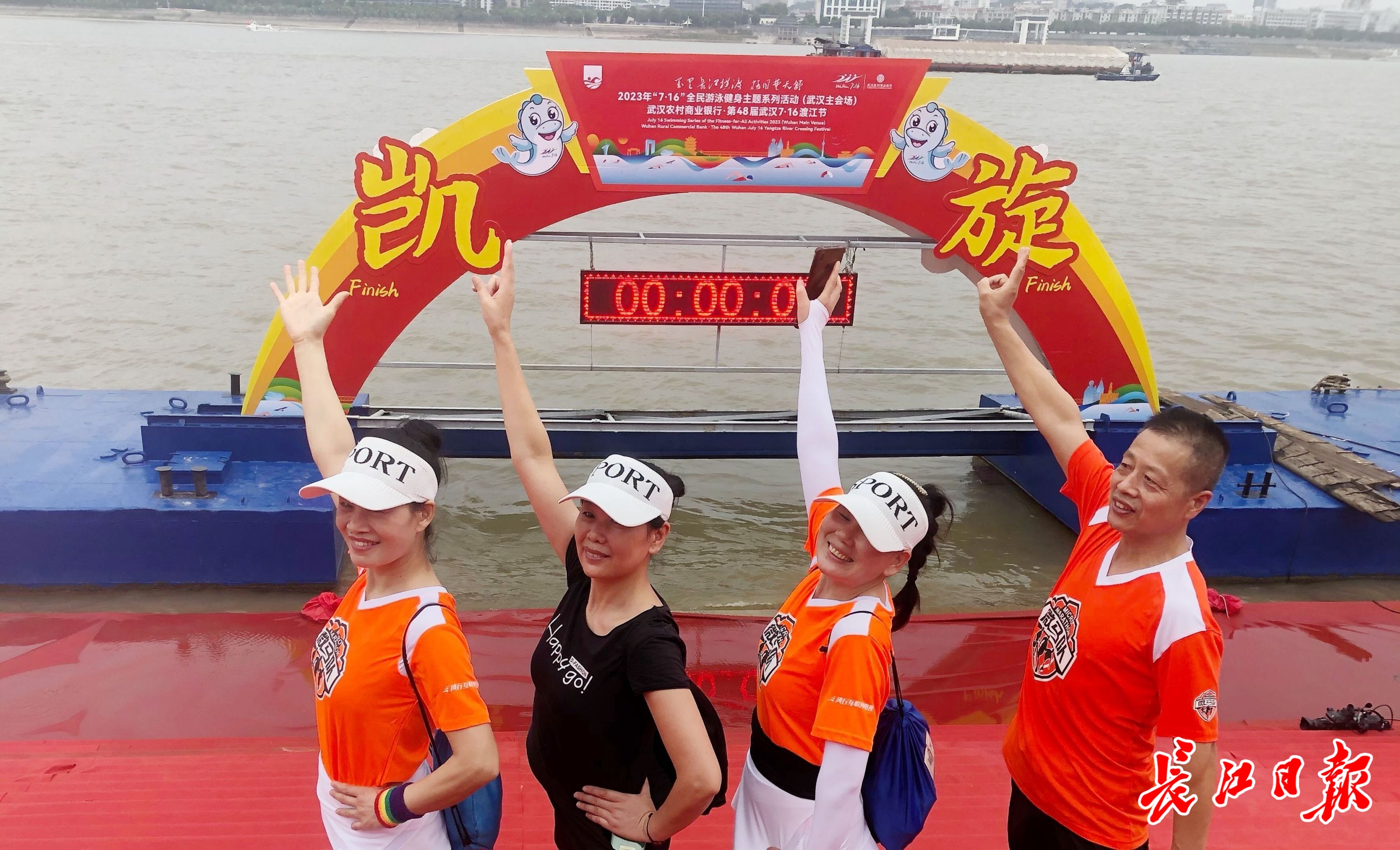 长江日报大武汉客户端7月16日讯 7月16日7时许,2023年“7·16”全民游泳健身主题系列活动(武汉主会场)武汉农村商业银行·第48届武汉7·16渡江节举行,南岸嘴抢渡起水点,不少市民在终点打卡拍照。(长江日报记者刘斌 摄影报道)