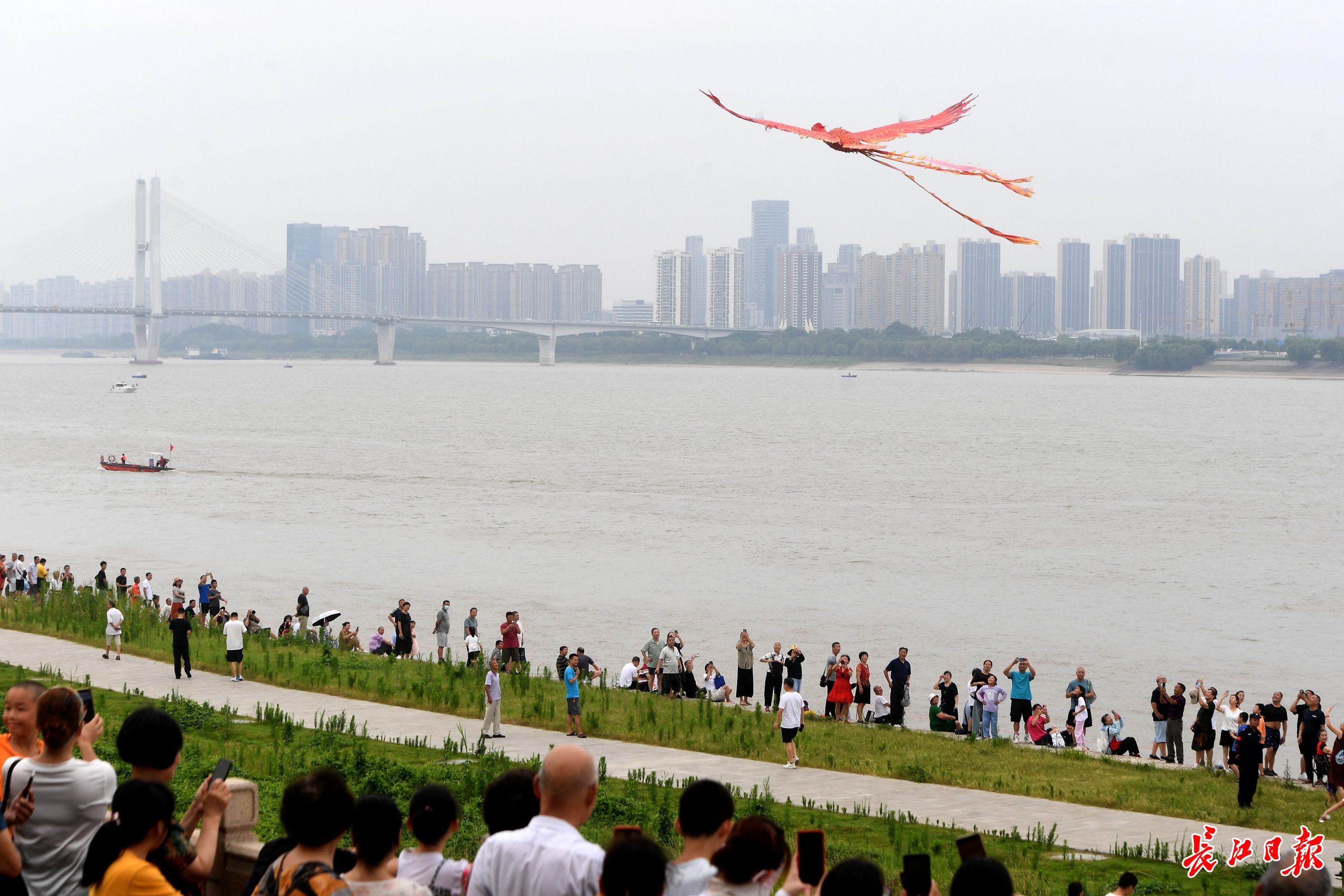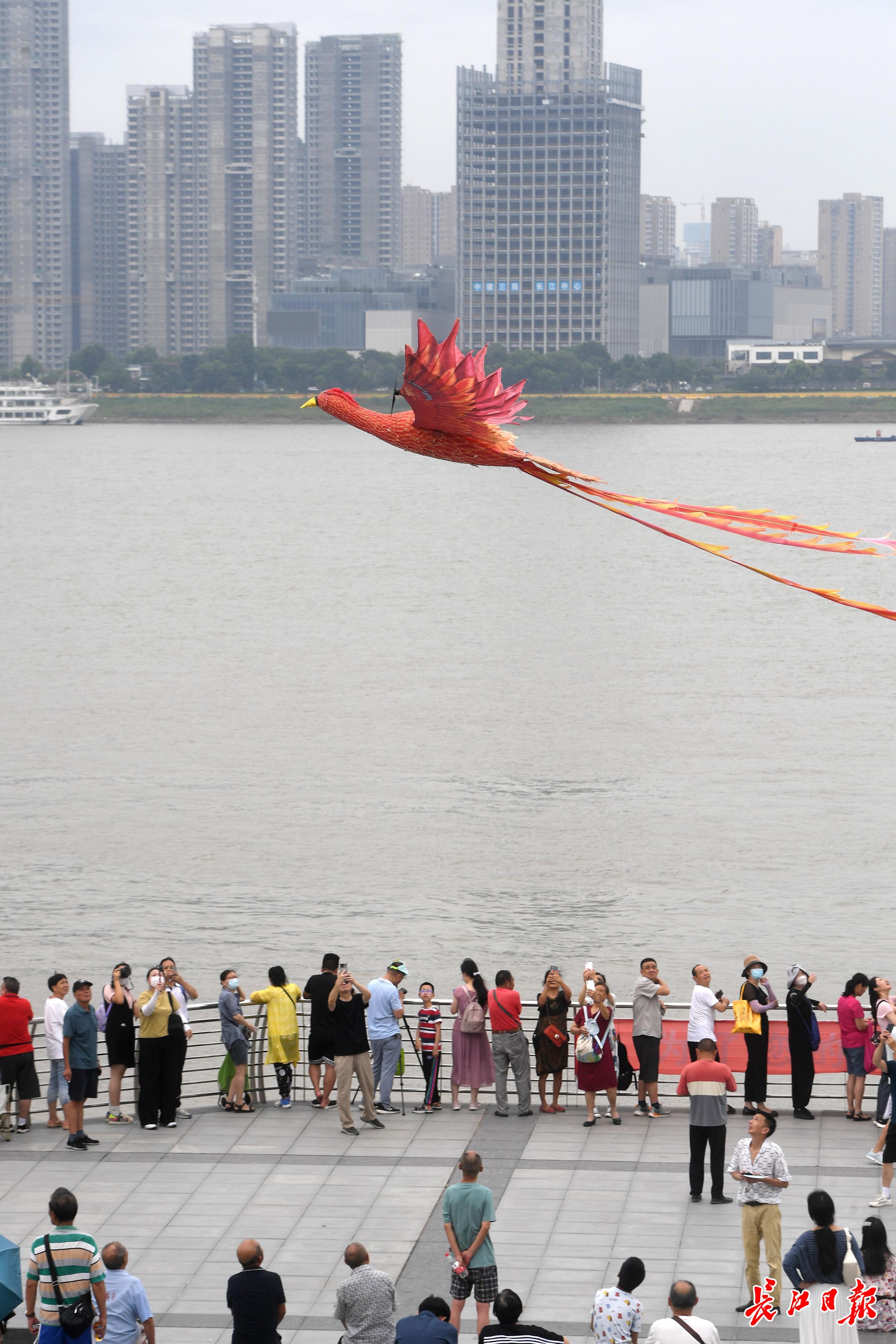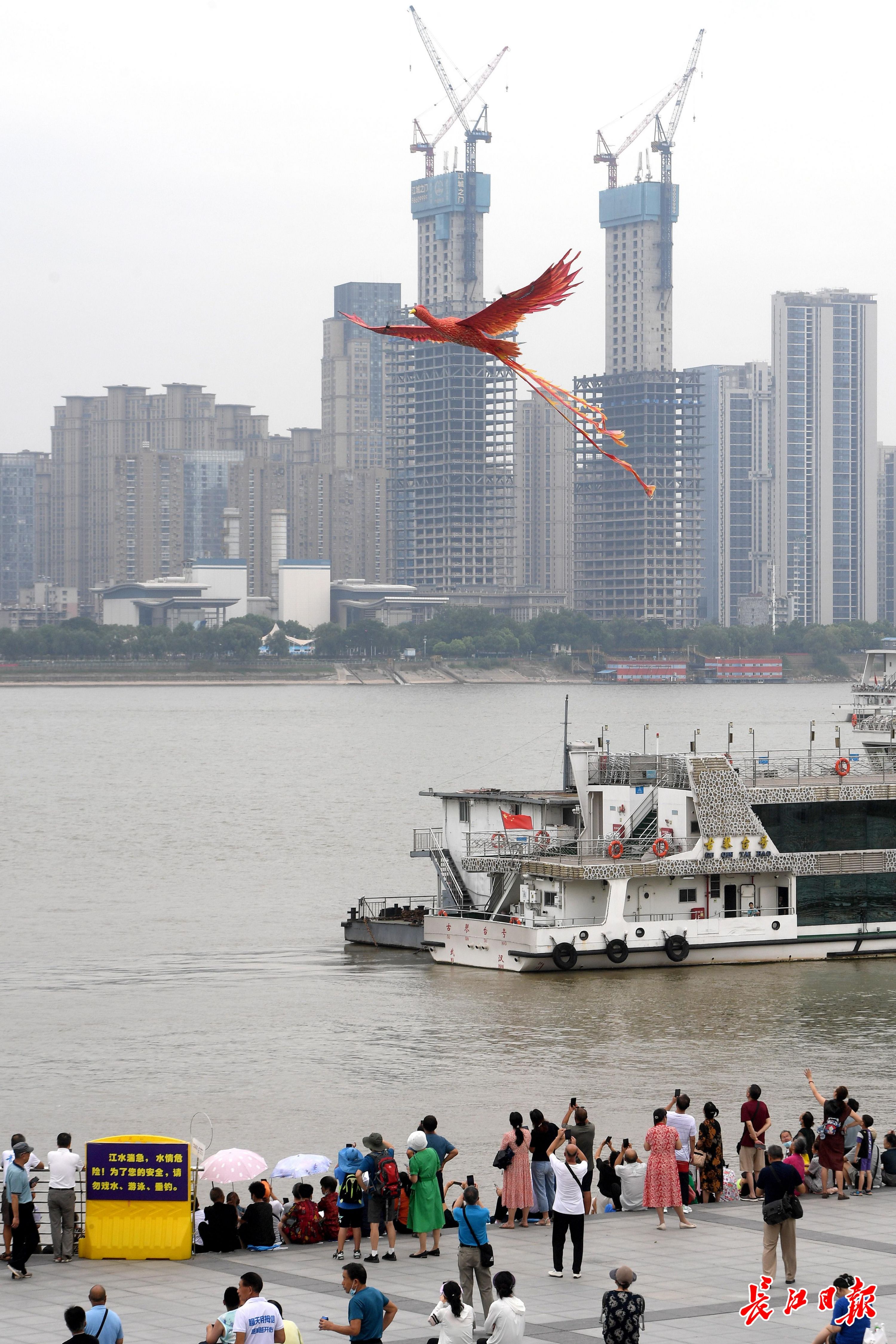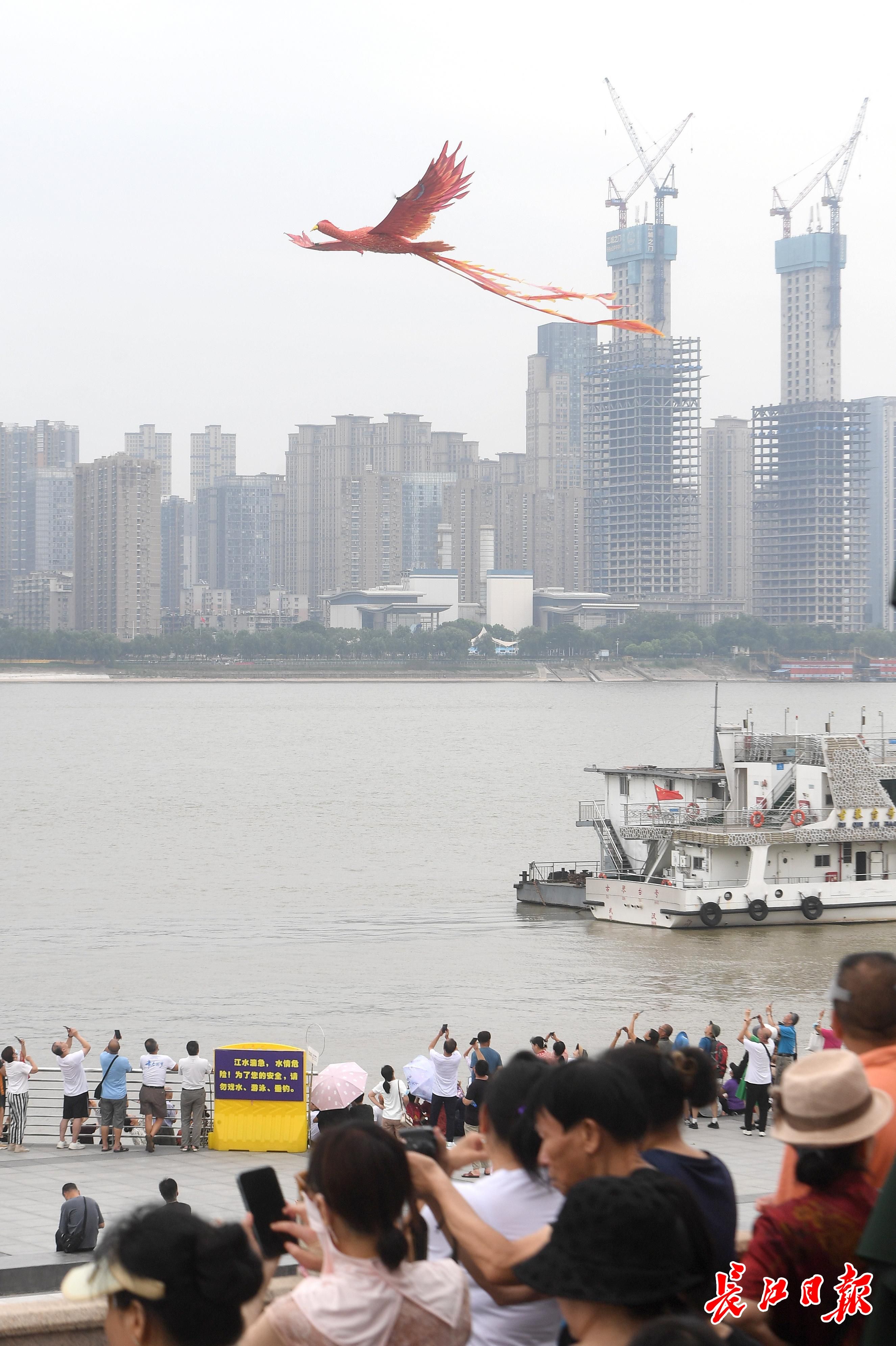 “凤”击长空,瞰千人竞渡 ©原创 2023-07-16 10:43 0 长江日报大武汉客户端7月16日讯 2023年7月16日,长江日报“可视电台”在武汉横渡长江博物馆一楼的渡&咖(江景店)唱响武汉激爽渡江之夏,用音乐直播为渡江勇士们加油助威。直播现场,一只由湖北大秀智控科技发展有限公司研发制造的6米长“凤凰”软体无人机翱翔空中,“凤凰”展翅、江边欢唱,是观看渡江节的最美打开方式。(长江日报记者周超 摄影报道) 【编辑:王戎飞】