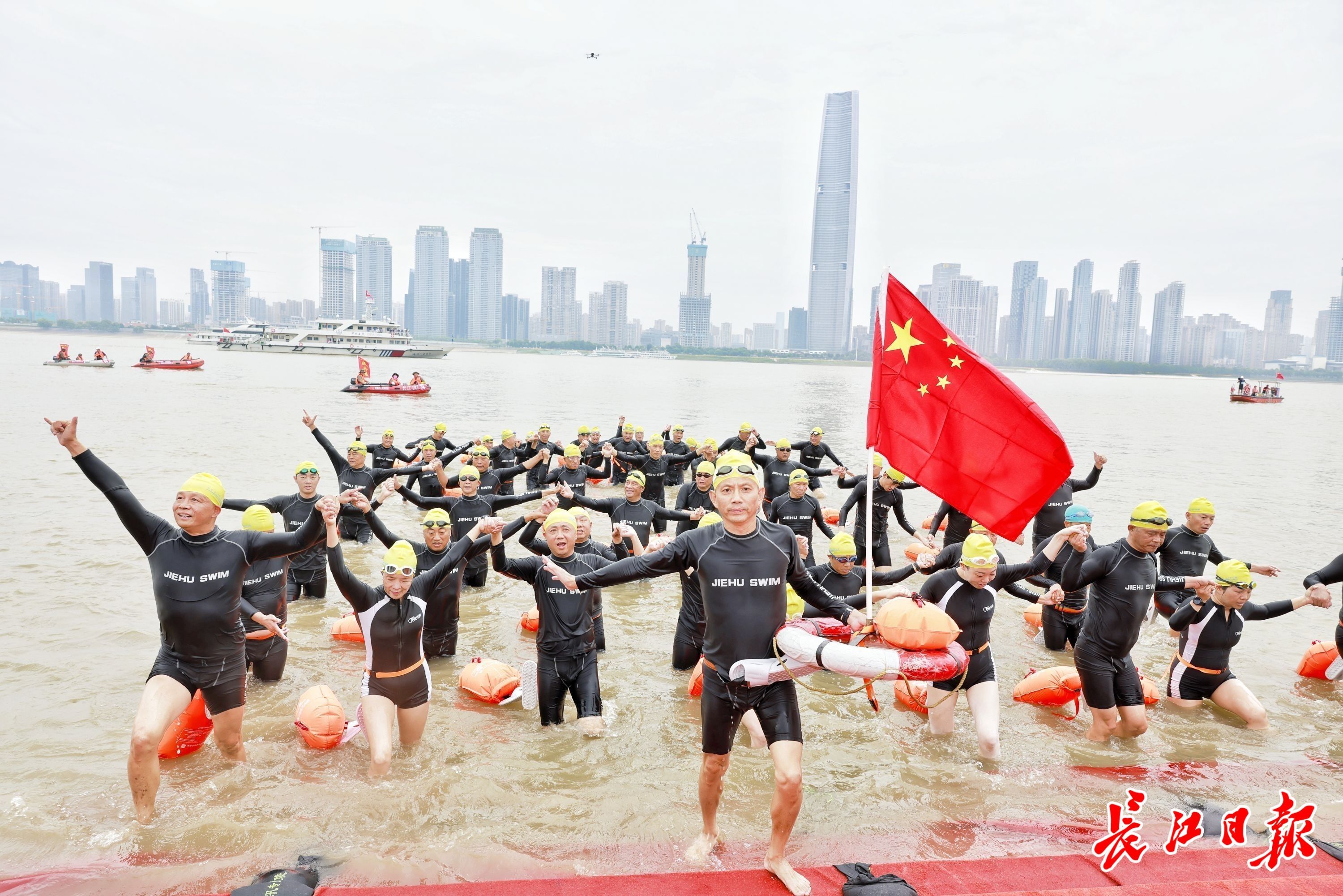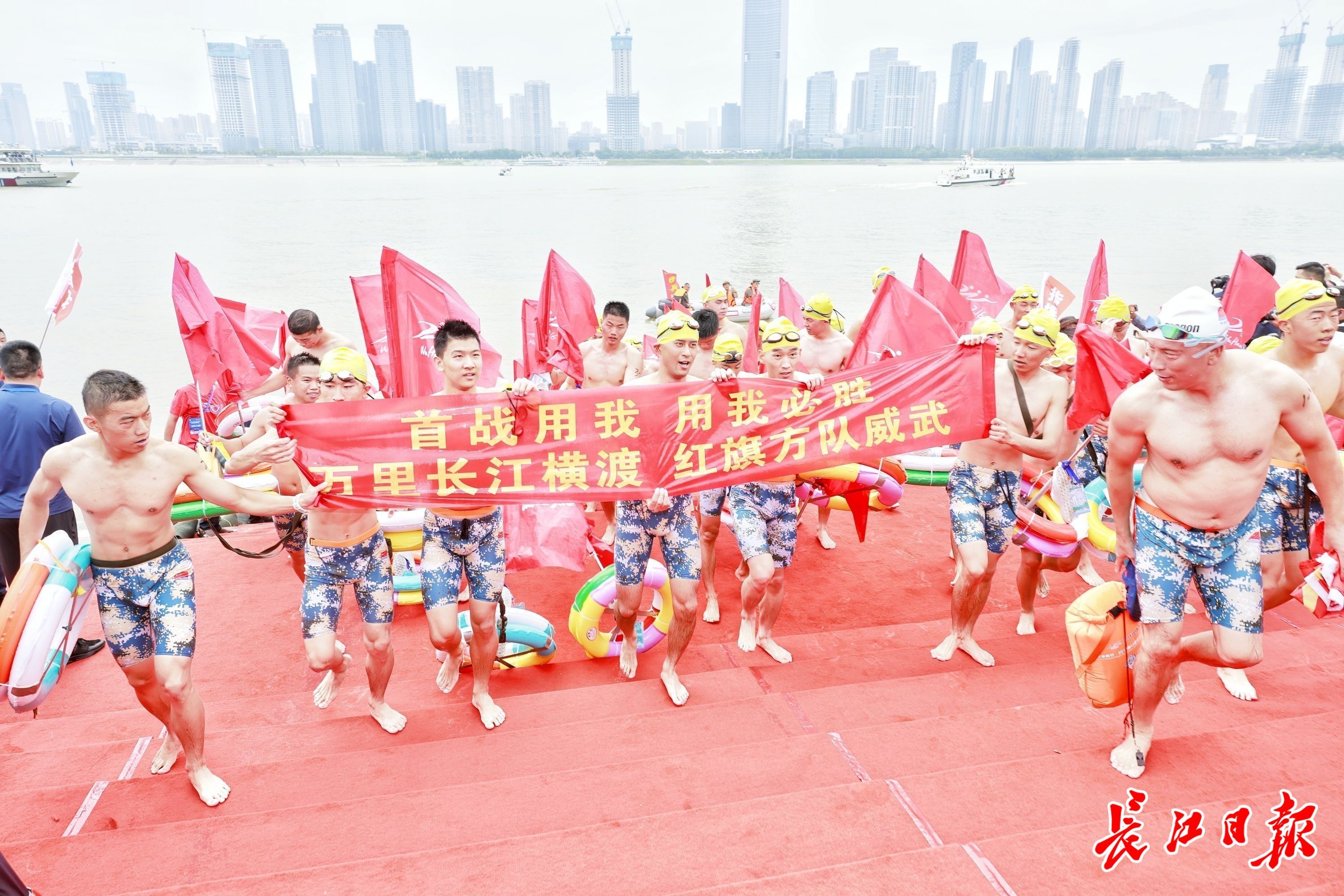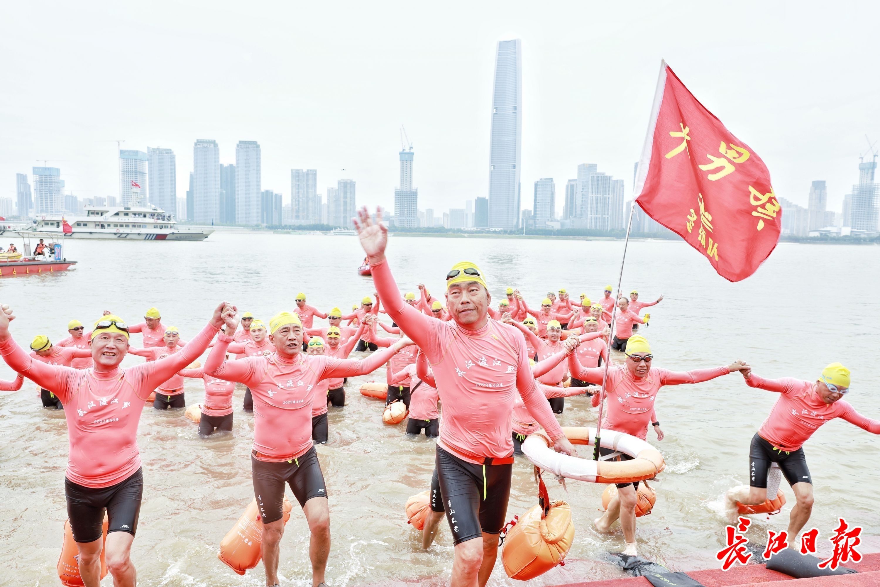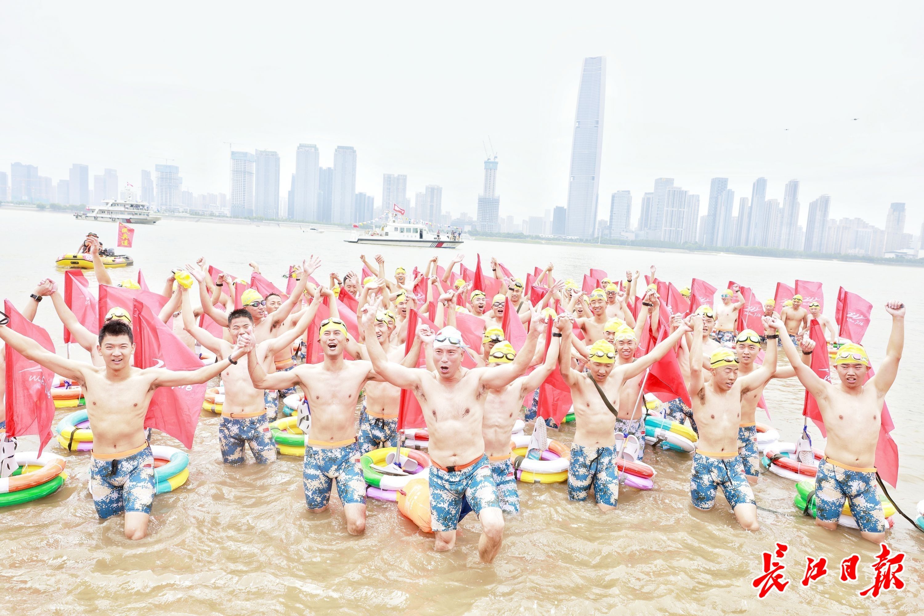 泳士归来!渡江方队携手上岸