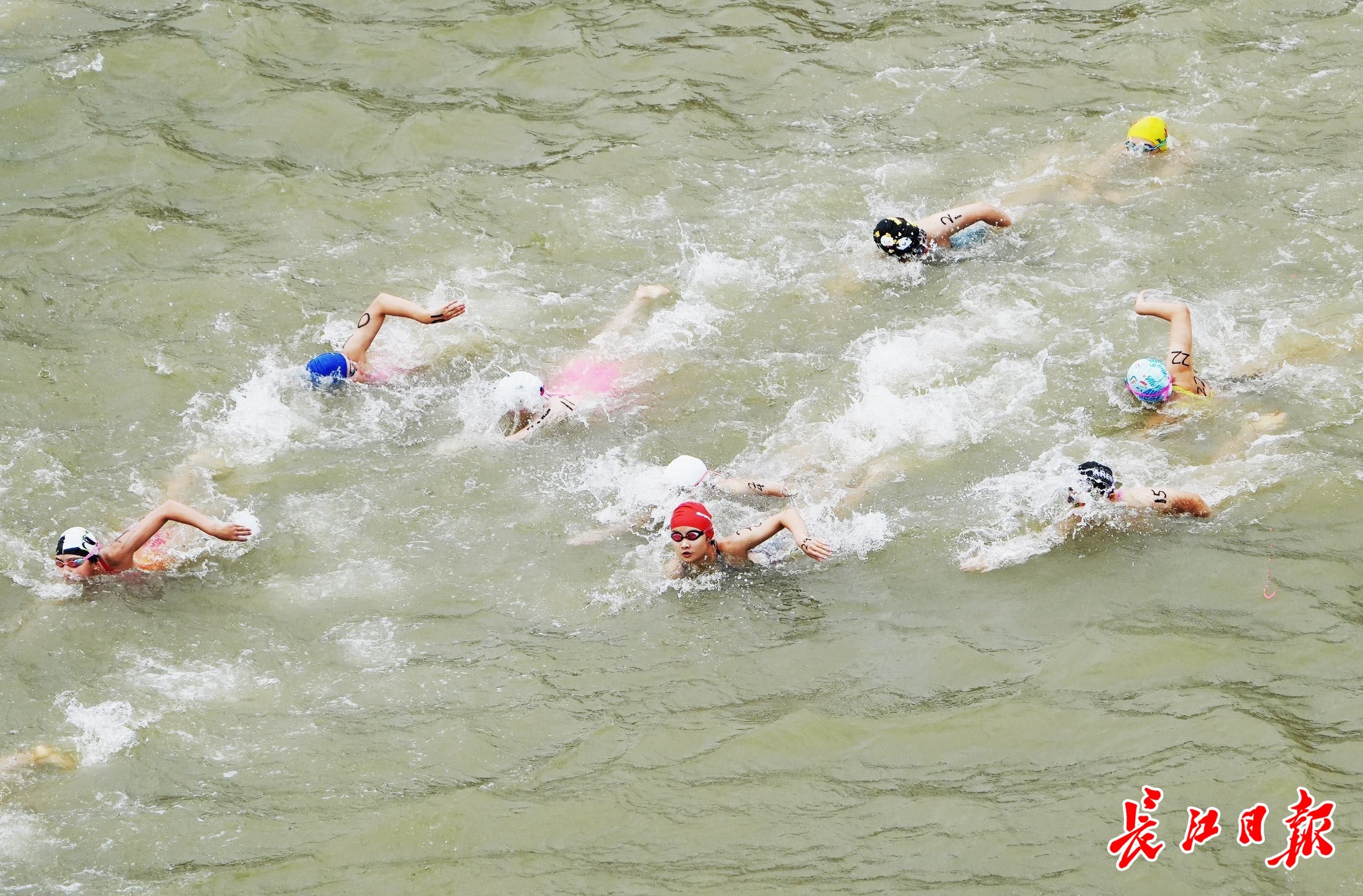 7月16日,2023年第48届武汉7·16渡江节开幕,抢渡选手劈波斩浪。长江日报记者 何晓刚 摄