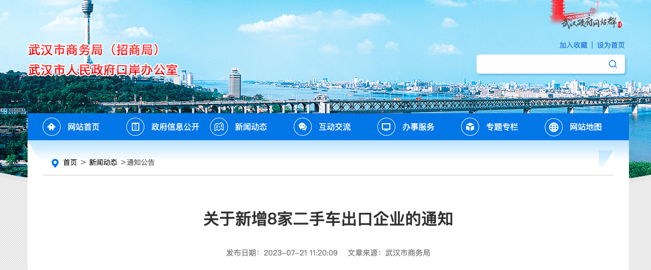 7月21日,武汉市商务局公布了我市新一批二手车出口企业名单,8家入选。