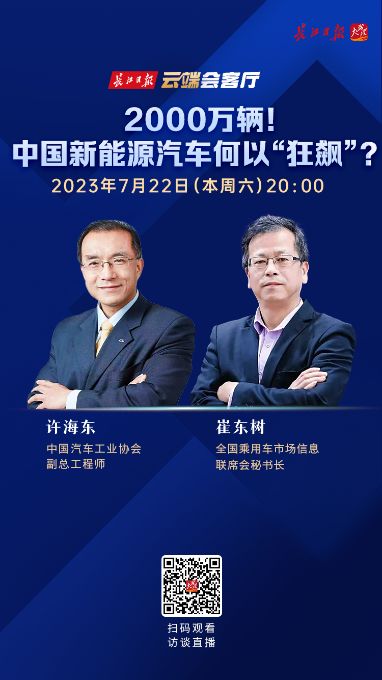 7月22日20:00,云端会客厅邀请全国乘用车市场信息联席会秘书长崔东树和中国汽车工业协会副总工程师兼产业研究部部长许海东,对我国新能源车发展情况和未来方向进行解读。