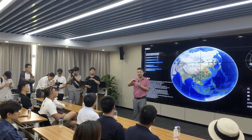 “大家知道北斗七星是由哪几颗星组成的吗?”武汉北斗产业创新中心副主任黄斌热情接待两岸青年,带领他们了解“北斗”的发展演变过程,并介绍了北斗卫星导航系统的运用。