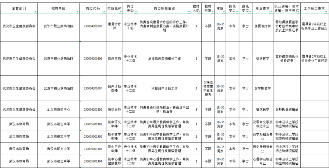 武汉市2023年度部分事业单位公开招聘工作人员878名公告要点如下↓↓↓