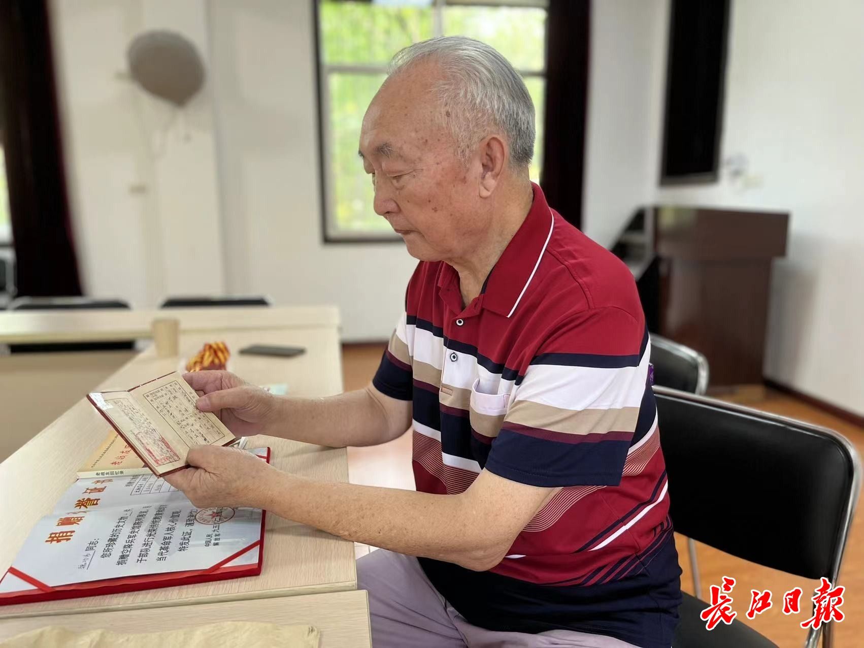 魏功伟在看当年的立功证明书。记者刘晨玮 摄
