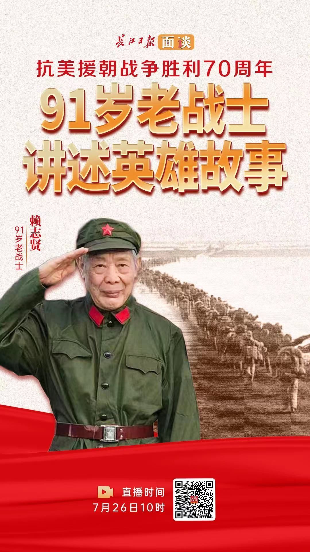 7月26日,在抗美援朝战场上主要从事后勤保障工作的赖志贤老人,在家人的陪同下,做客长江日报《面谈》节目,接受长江日报记者专访,将他当年报名参军的原因及他在抗美援朝战场上的战斗故事与退役后的工作经历,详细讲给观众听。