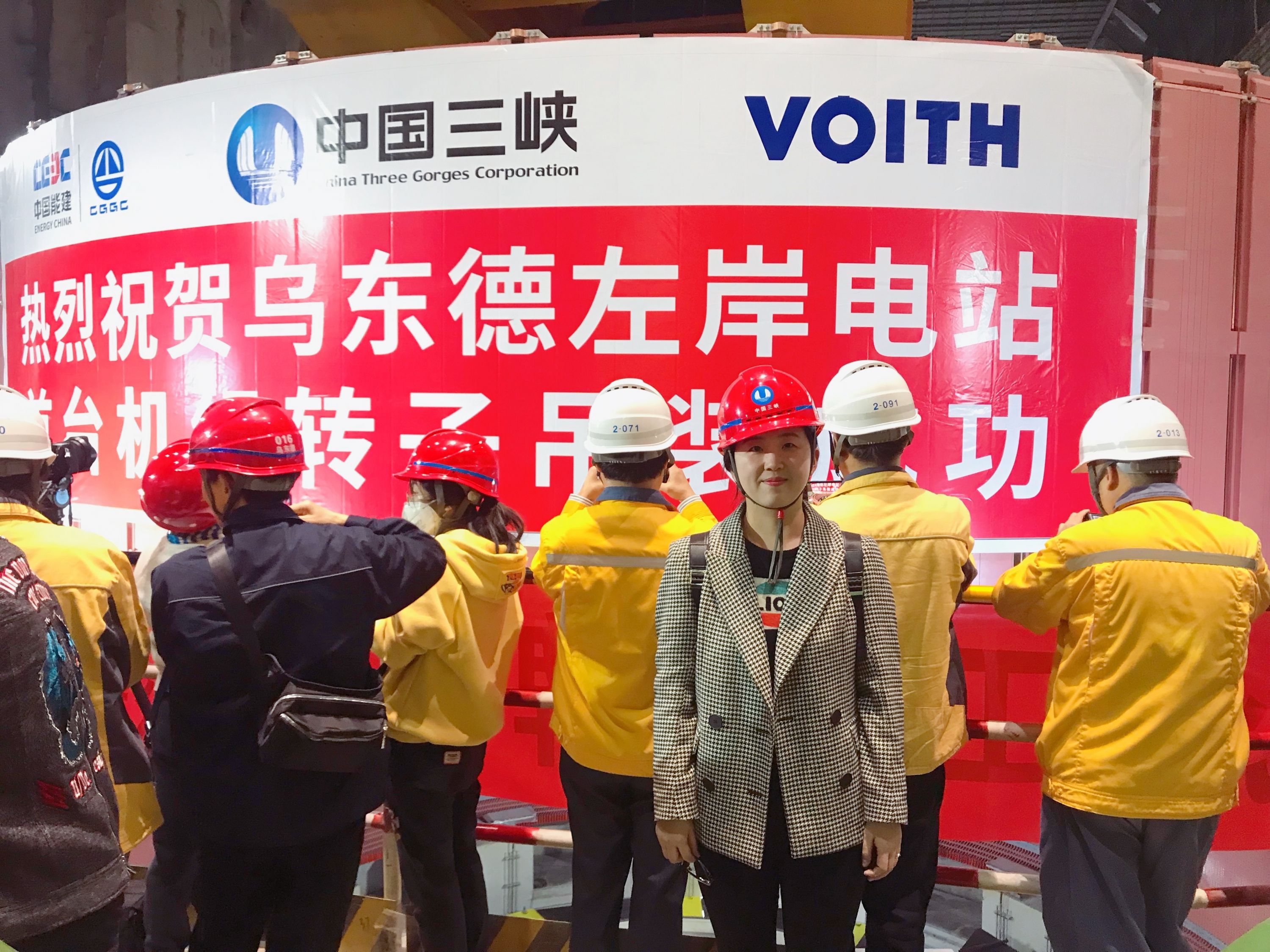 宋畅在乌东德水电项目首台机组转子吊装现场。本人供图