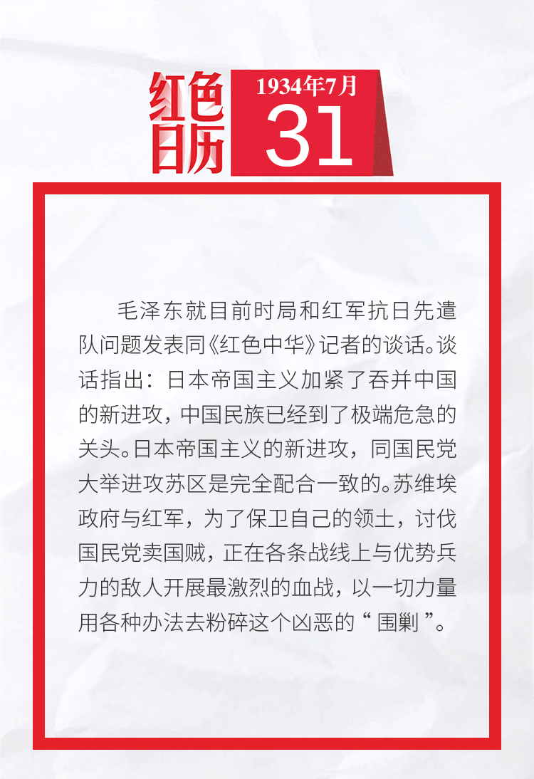 1934年的今天,毛泽东发表同《红色中华》记者的谈话|红色日历