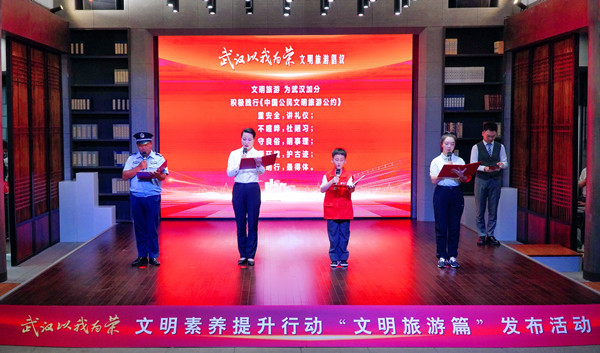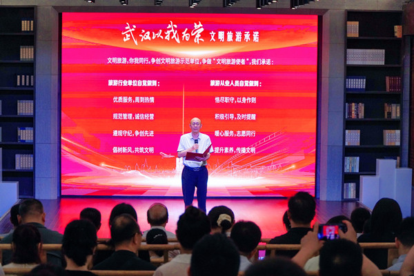 “走出家门,我代表武汉;走出国门,我代表中国,文明旅游为武汉加分。”现场,来自全市旅游行业的4位典型代表,共同发起“武汉以我为荣”文明旅游倡议,表示将带头积极践行《中国公民文明旅游公约》,用实际行动引领文明旅游。