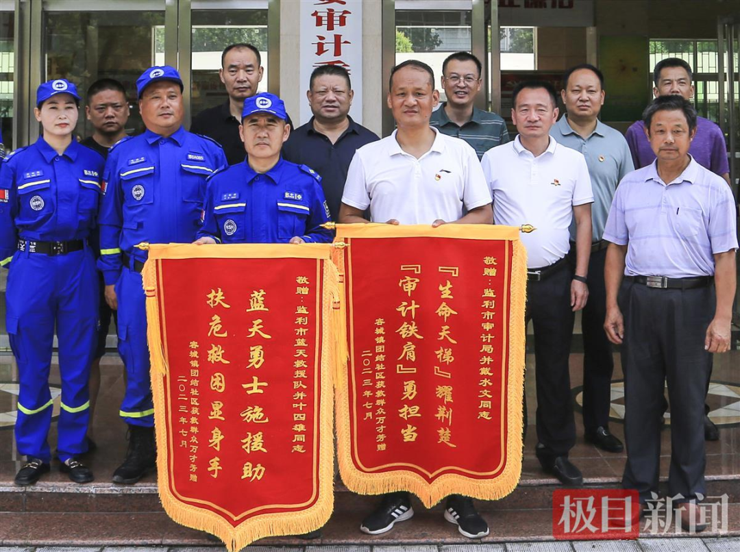 7月10日上午,被救者万彩红和其父亲万才芳给戴水文和叶四雄送上锦旗,以此表达对救命恩人的谢意。