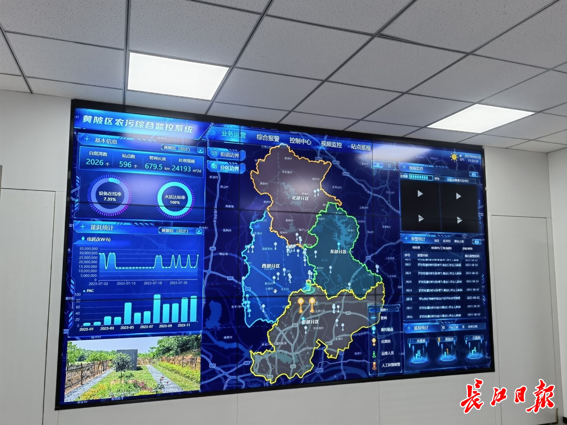 黄陂区农村生活污水处理项目智慧管理平台。记者龚萍 摄