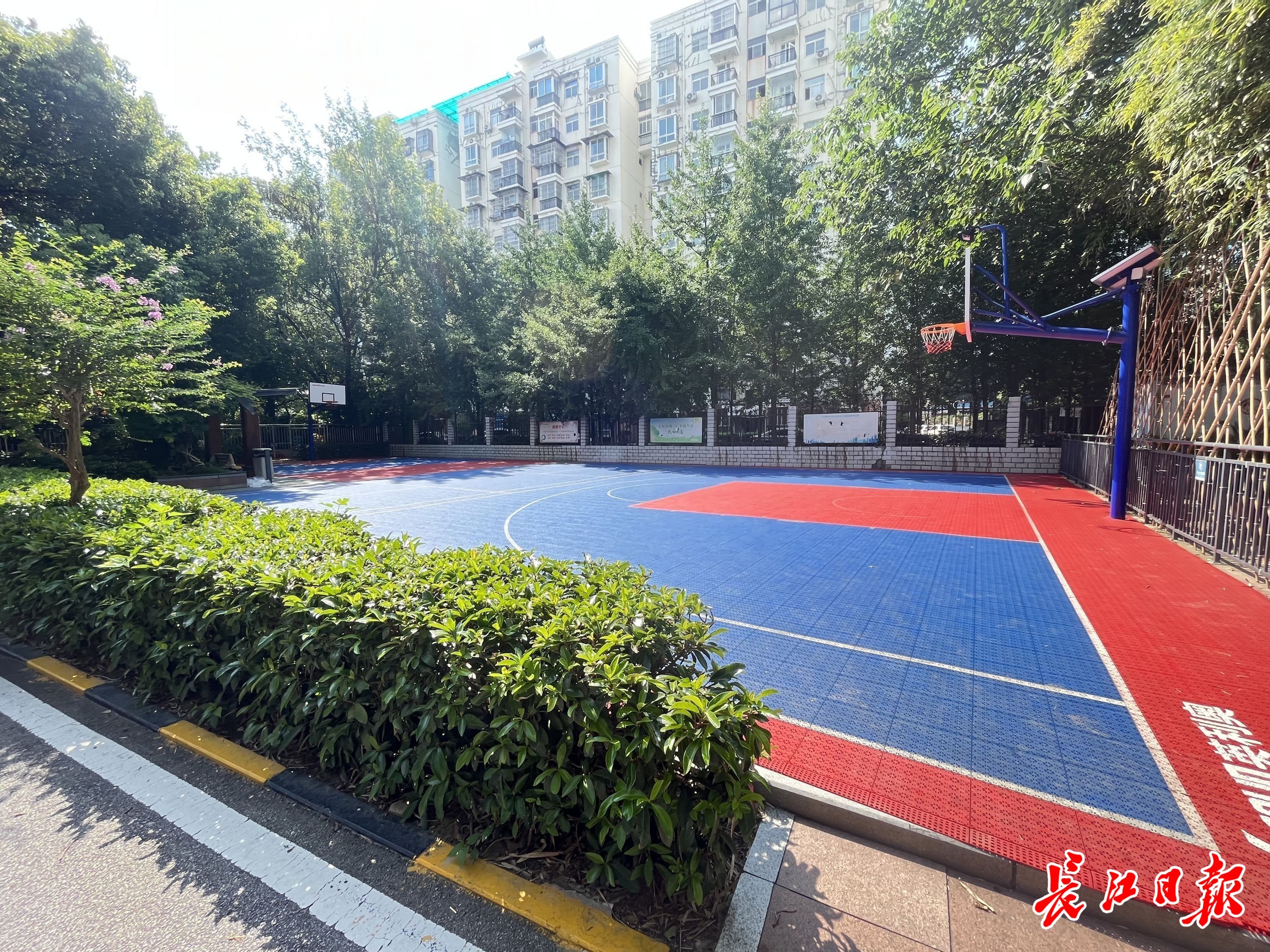 升级改造后的篮球场色彩鲜艳有活力。记者冷靖华 摄