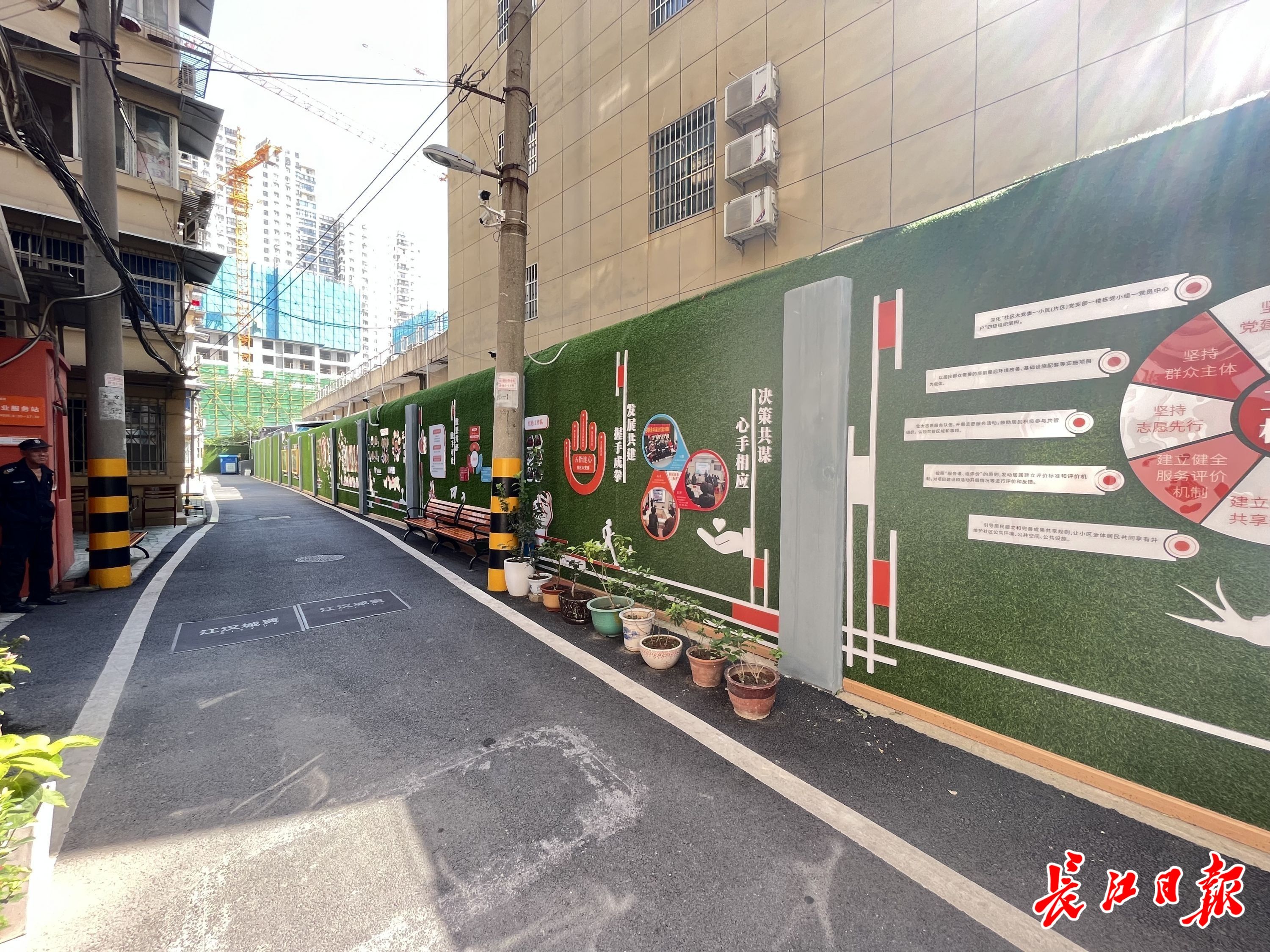 比如,在汉和蕙苑小区、中百宿舍、雅苑公寓等多个小区,整合资源、筹措资金修建5处停车棚,解决小区电动车停车难问题,构建社区“易行场景”;运用共同缔造理念,通过“三个一点”(即居民群众出资一点、财政支持一点、辖区单位帮扶一点)的方式实施中百宿舍“平改坡”项目,解决老旧小区房屋漏水问题,结合老旧小区改造提升居民居住环境,构建社区“适居场景”;在顶琇晶城小区打造集议事、理疗、健身、文创制作等于一体的共享客厅,使之成为居民日常休闲娱乐、开展活动的好去处,构建社区“乐活场景”;对砺志宿舍和顶琇晶城小区进行消防工程改造,依托旧改对老旧小区中百宿舍及市政宿舍小区进行地下管网改造,构建社区“平安场景”;还将打造以“Citywalk”泡桐网红步道和即将投入使用的万科口袋公园为特色的“公园+绿道”,形成绿色生态空间集聚地,营造社区“休闲场景”。