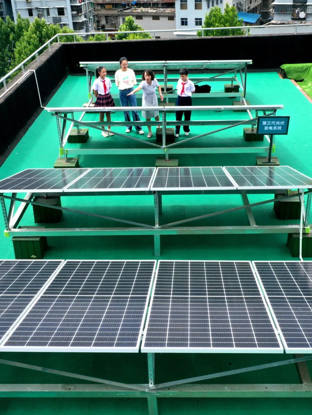 三峡电能在红旗村小学楼顶铺设新一代BIPV光伏发电系统,年发电量5.4万度。记者刘斌 摄