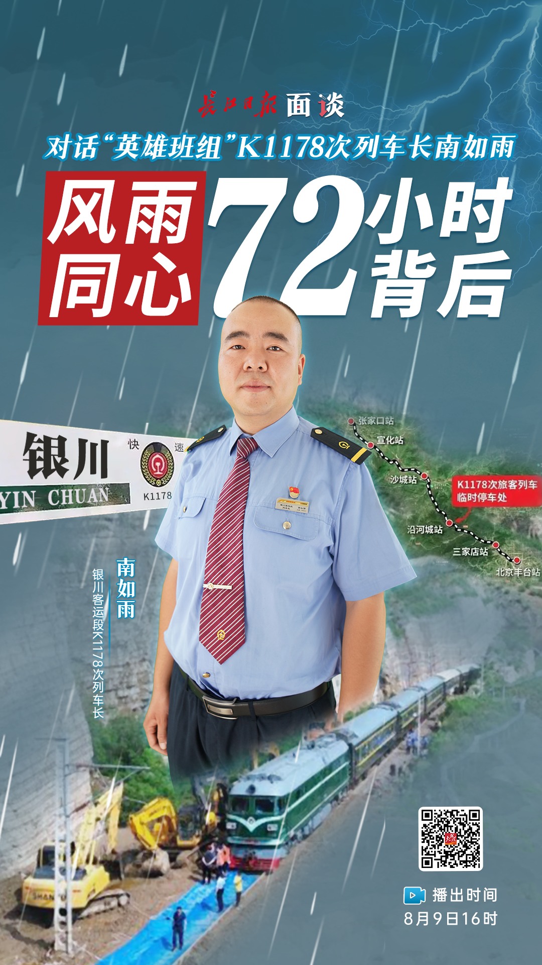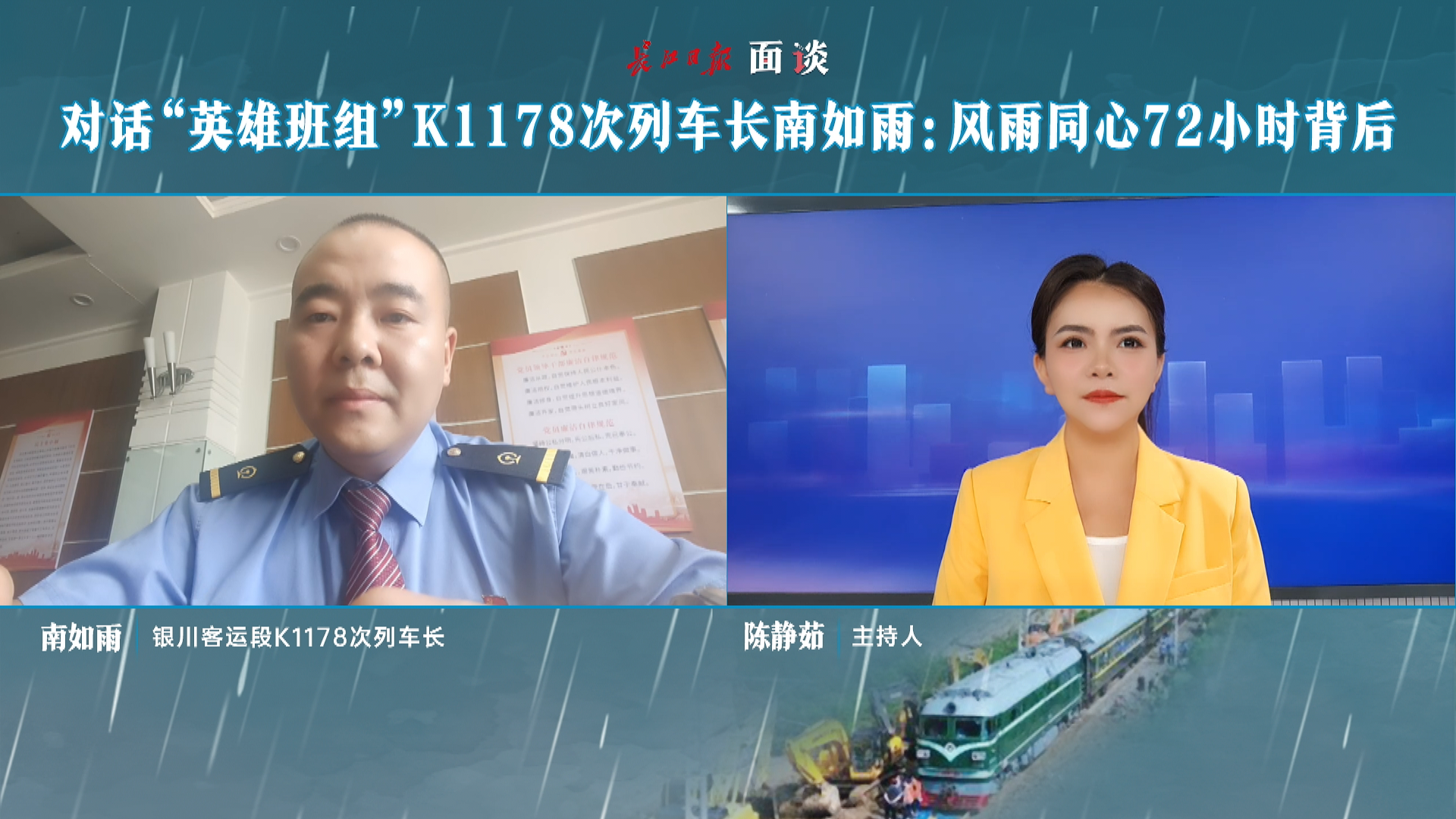近日,北京遭遇历史罕见汛情。7月30日,三趟列车受困门头沟车站,是此次汛情中最受关注的事件。其中,由银川开往北京的K1178次列车滞留在沿河城站,距离北京城区最远。由于信号中断,全车曾失联50多个小时,具体受困情况也是最晚传出的。8月2日,滞留旅客转移至张家口站,全部平安。这趟列车曲折的旅程终于画上句号。70多个小时中,车上情况如何?怎样脱困的?南如雨做客长江日报《面谈》,为大家讲述背后的故事。