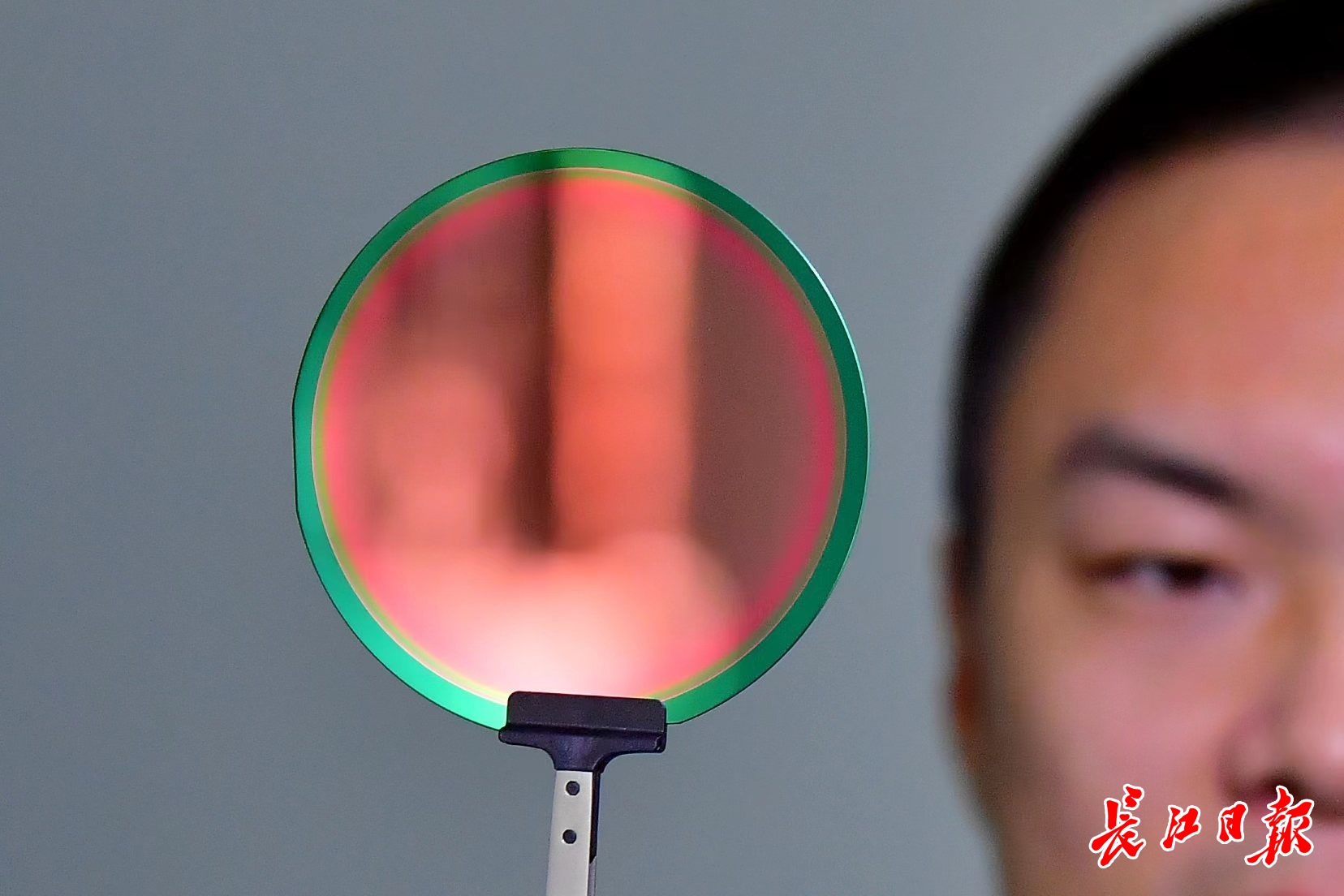 晶圆镀过膜后明亮如镜。长江日报记者 刘斌 摄