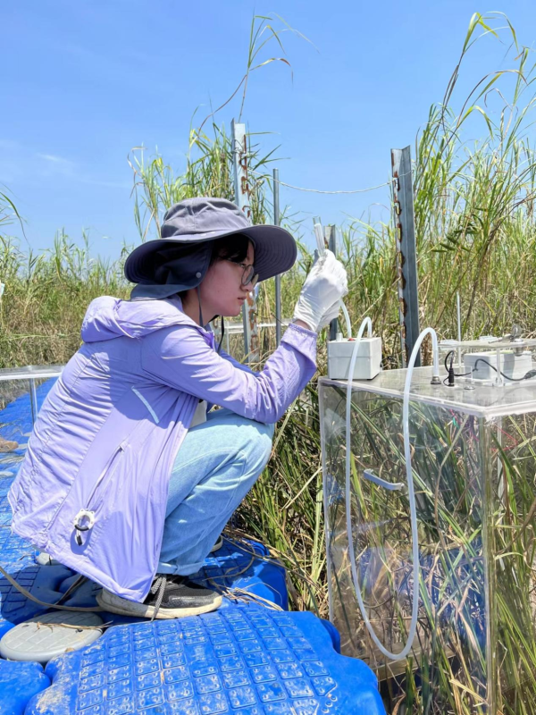 研究人员在调查沉湖湿地碳汇价值。李朋 摄