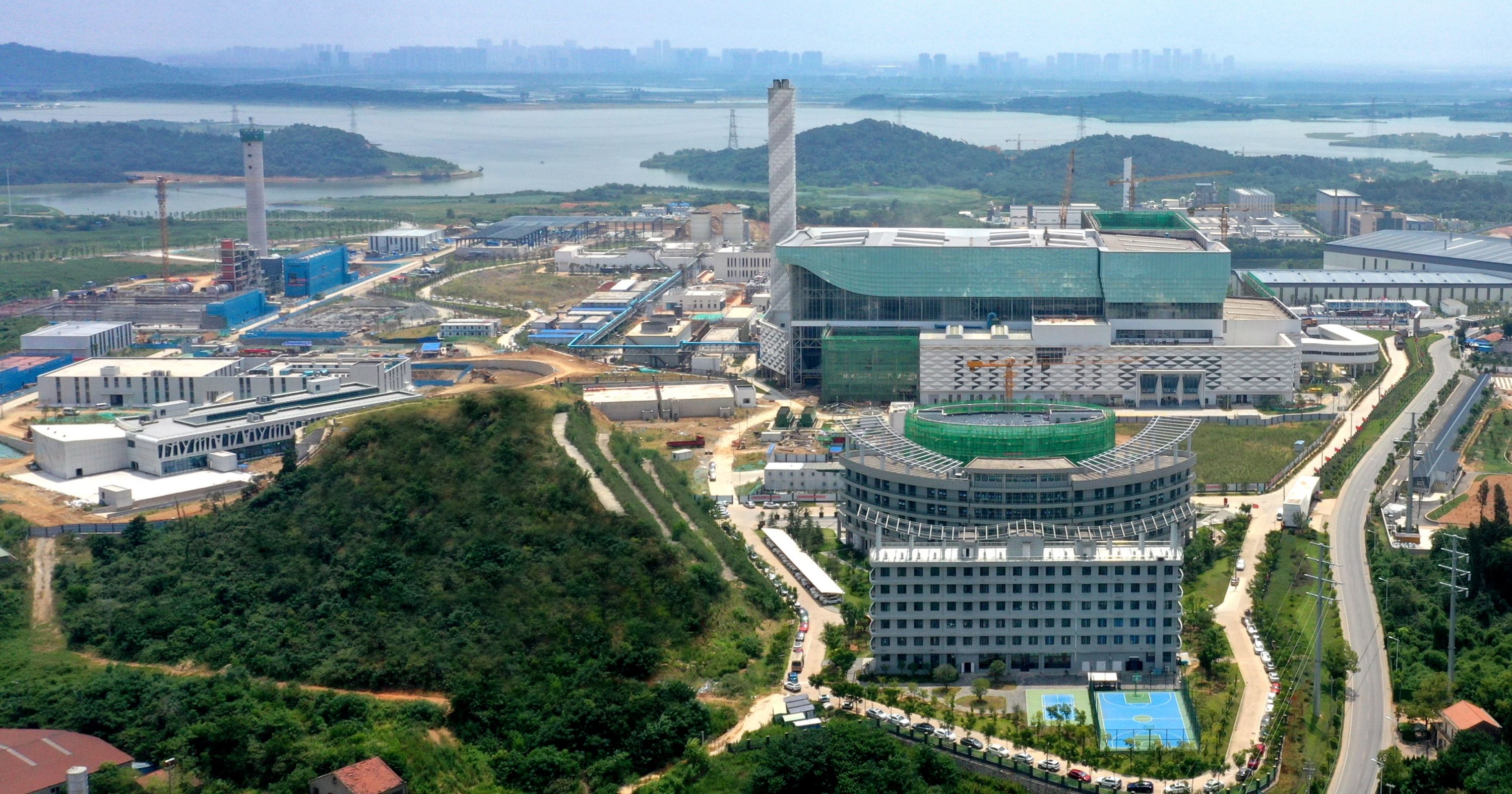 武汉千子山循环经济产业园位于蔡甸区,由武汉环投集团作为建设业主单位开展建设,由核心区、防控区和还建区三个功能区组成。核心区占地843亩,以3000吨/日生活垃圾焚烧发电厂为核心,同步建设有1000吨/日有机质固废处理厂、1500吨/日建筑垃圾处理厂、60吨/日医废处理厂、160吨/日危废处理厂、500吨/日污泥处理厂等6个板块。并配套建设综合管理区、900吨/日污水处理厂、125吨/日灰渣安全填埋场、10kV配电中心、山体修复及智慧化提升等子项。
