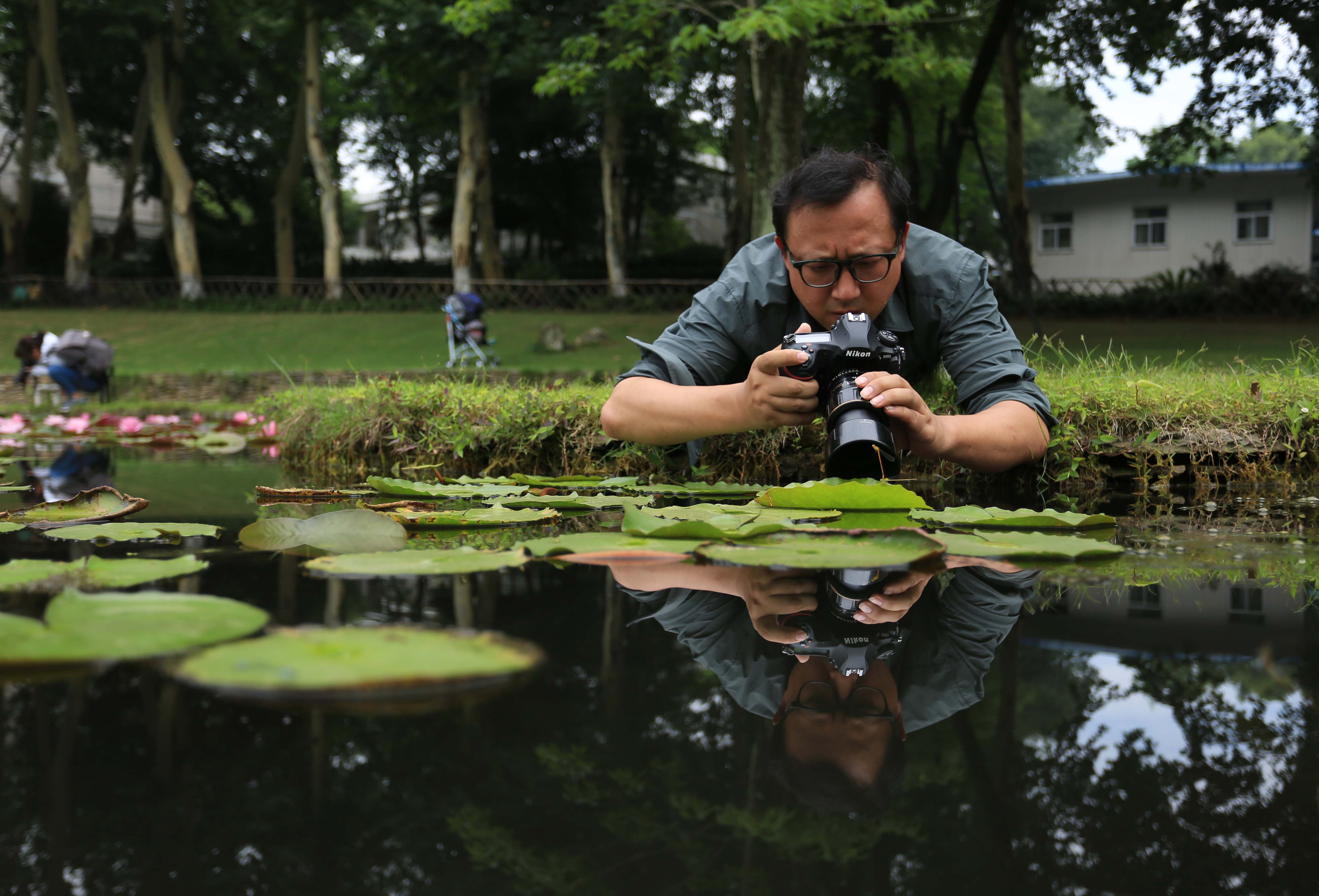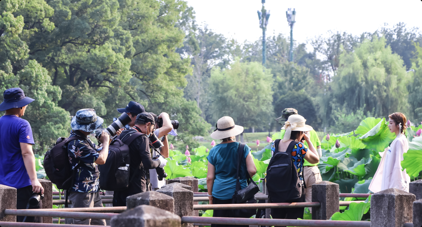 摄影师集体拍摄东湖荷花。赵丽继 摄
