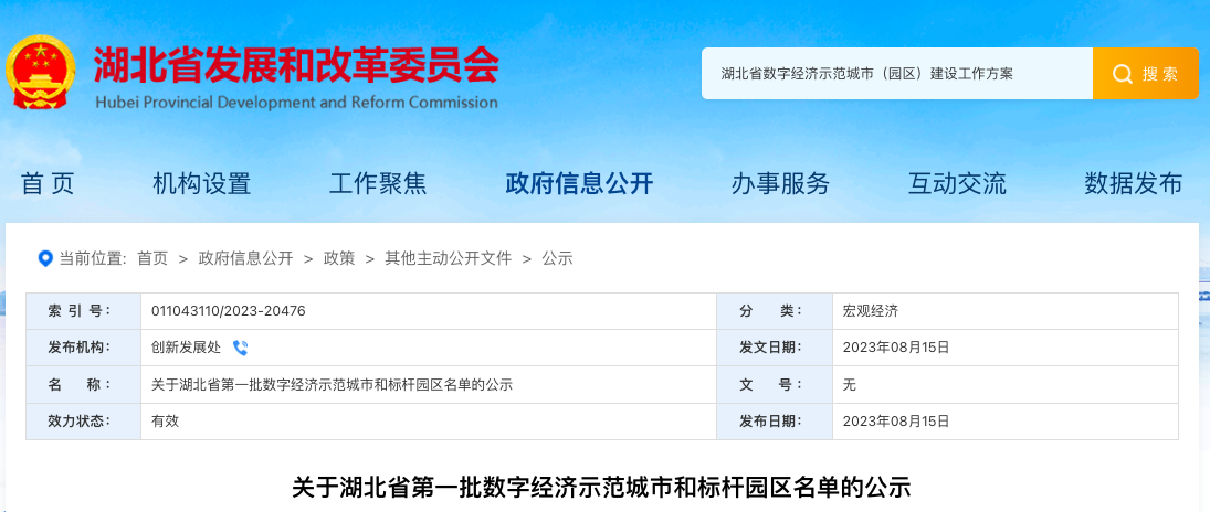 近日,湖北省发改委公示我省第一批数字经济示范城市和标杆园区名单,武汉两开发区入围标杆园区。公示期到2023年8月21日。