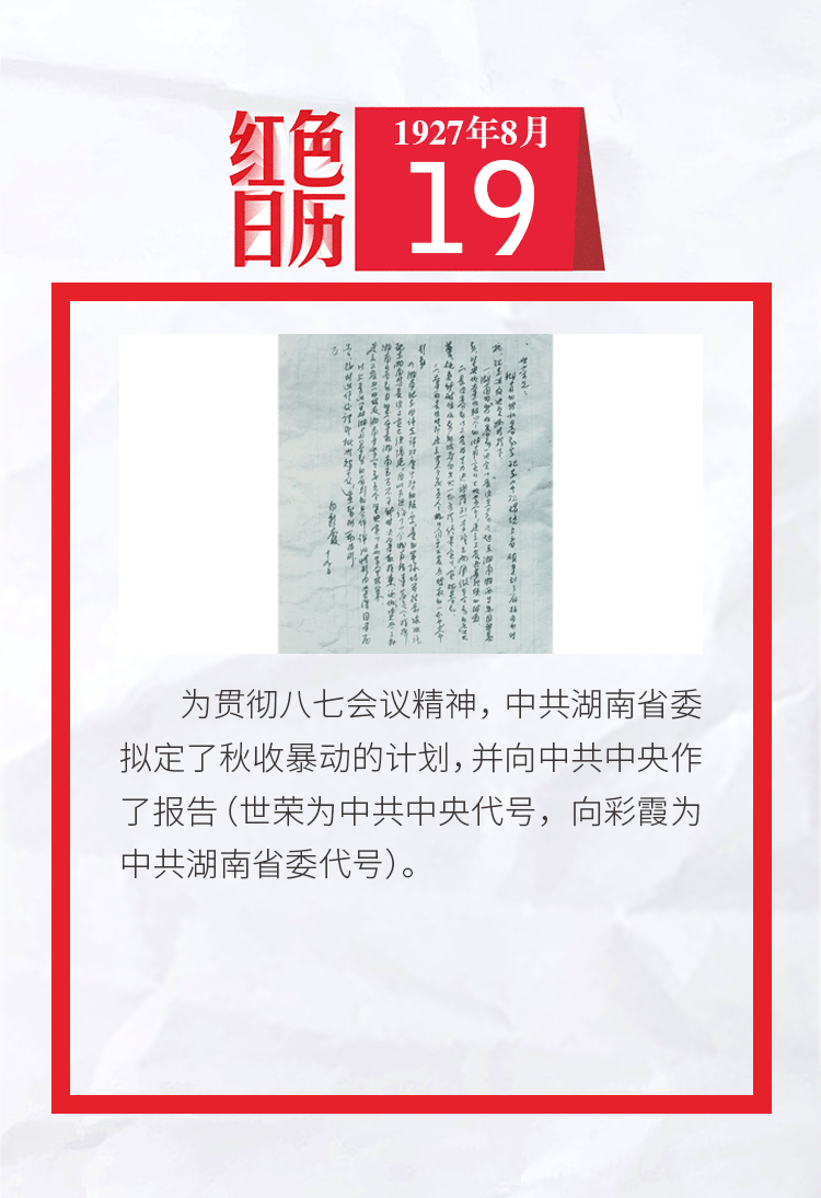 1927年的今天,中共湖南省委拟定了秋收暴动的计划|红色日历