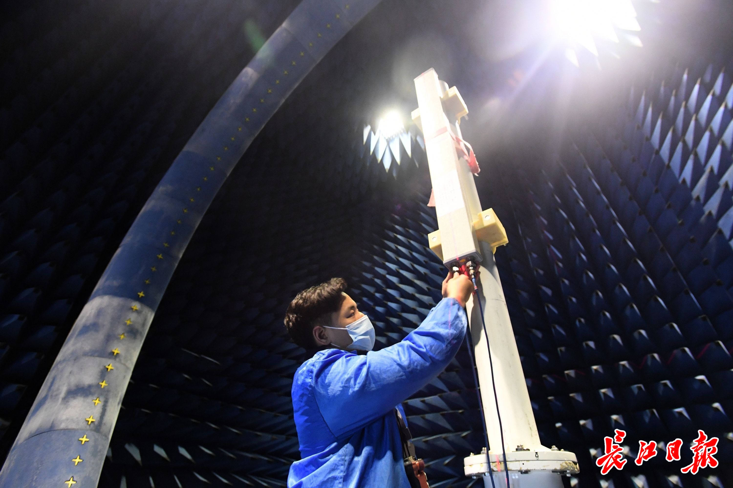 中国信科集团移动通信技术有限公司,科研人员在天线近场测试场内进行测试。长江日报记者周超 摄