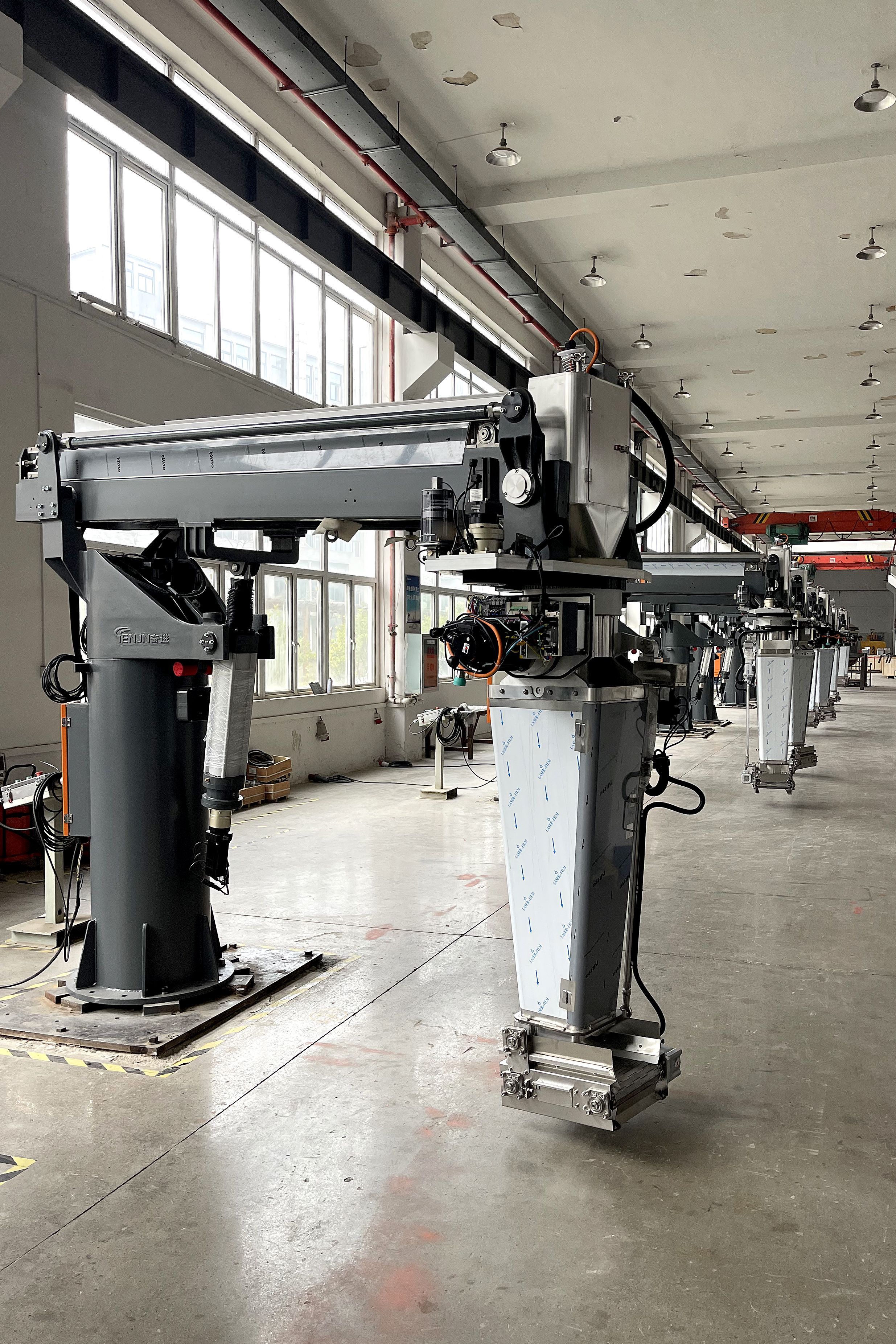 武汉奋进智能机器有限公司,白酒酿造上甑(zèng)专用机器人发货前进行功能调试。通讯员詹必胜 摄