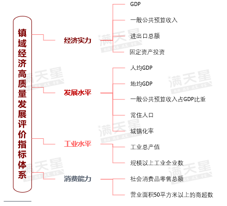 据悉,2023镇域经济500强暨西部50强设置评价“单门槛”,即一般公共预算收入≥1.5亿元。同时,基于对镇域经济高质量发展内涵的研究,本研究构建了镇域经济高质量发展评价指标体系,从经济实力、发展水平、工业水平、消费能力四个方面进行综合评价。