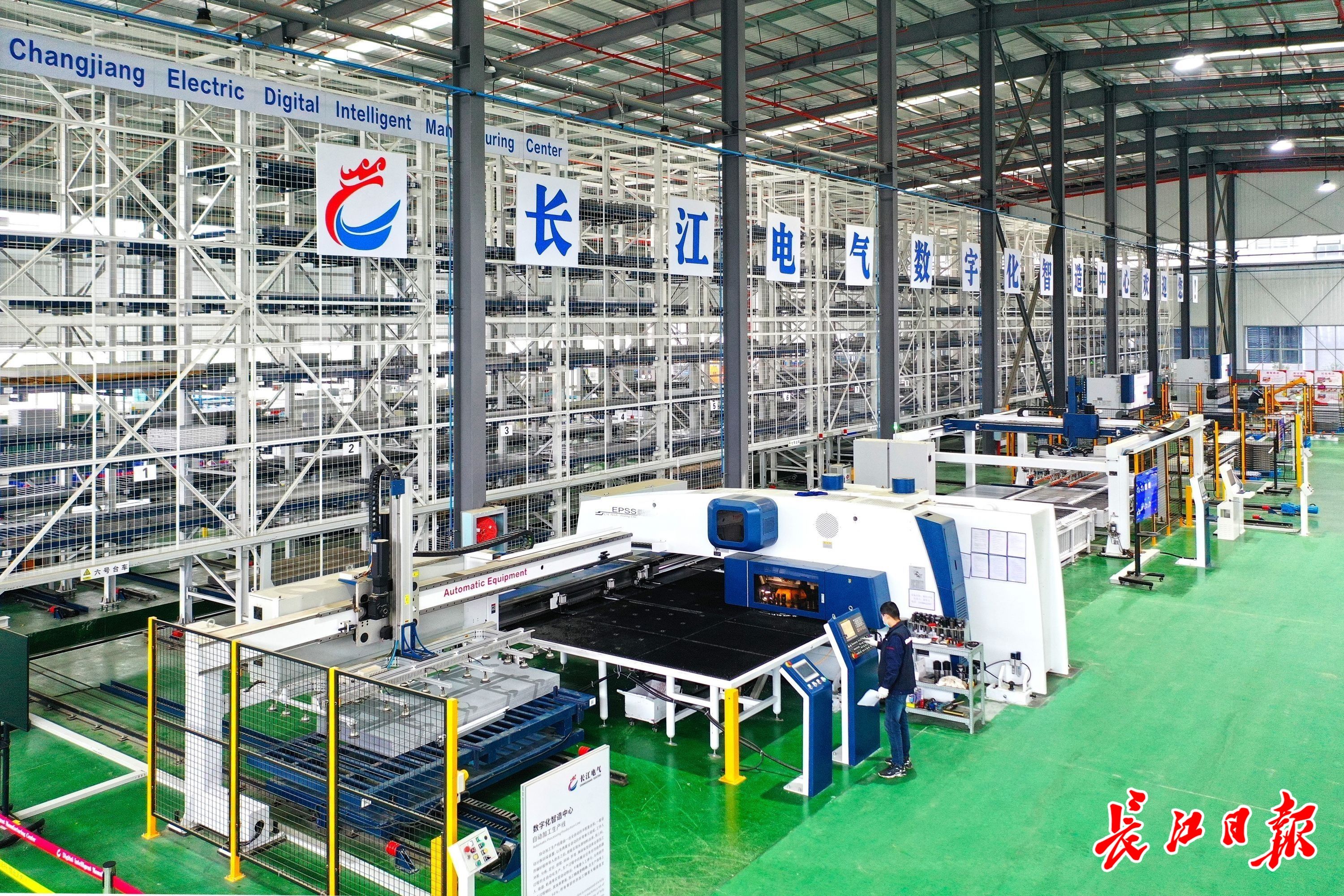 8月21日,长江电气数字化智造中心自动化生产线正在有序运转,伴随着工业机器人手臂的腾挪翻转,一片片金属板材出库上料,被放置到机床上,抓取、定位、折弯、码垛……